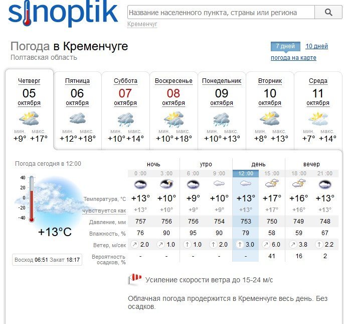 Попередження про шквали на сьогодні, 5 жовтня, та завтра, 6 жовтня, є також на sinoptik, rp5 та ventusky.