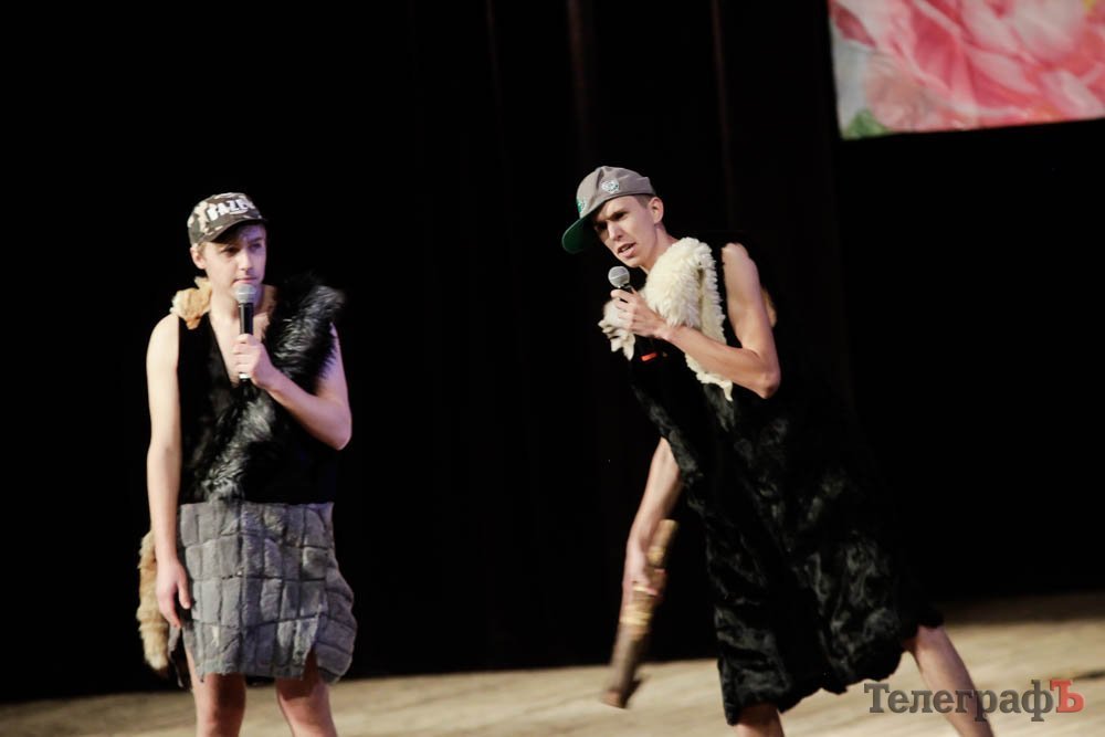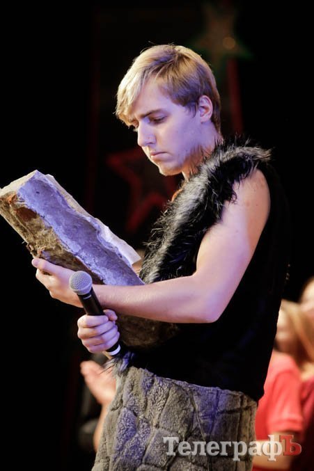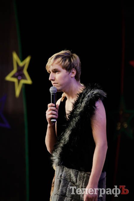 Переключала на интеллектуальный юмор команда из Днепра – «Племя ошибки Дарвина». Ребята смело пошутили над своими костюмами (напоминала одежду первобытных людей):