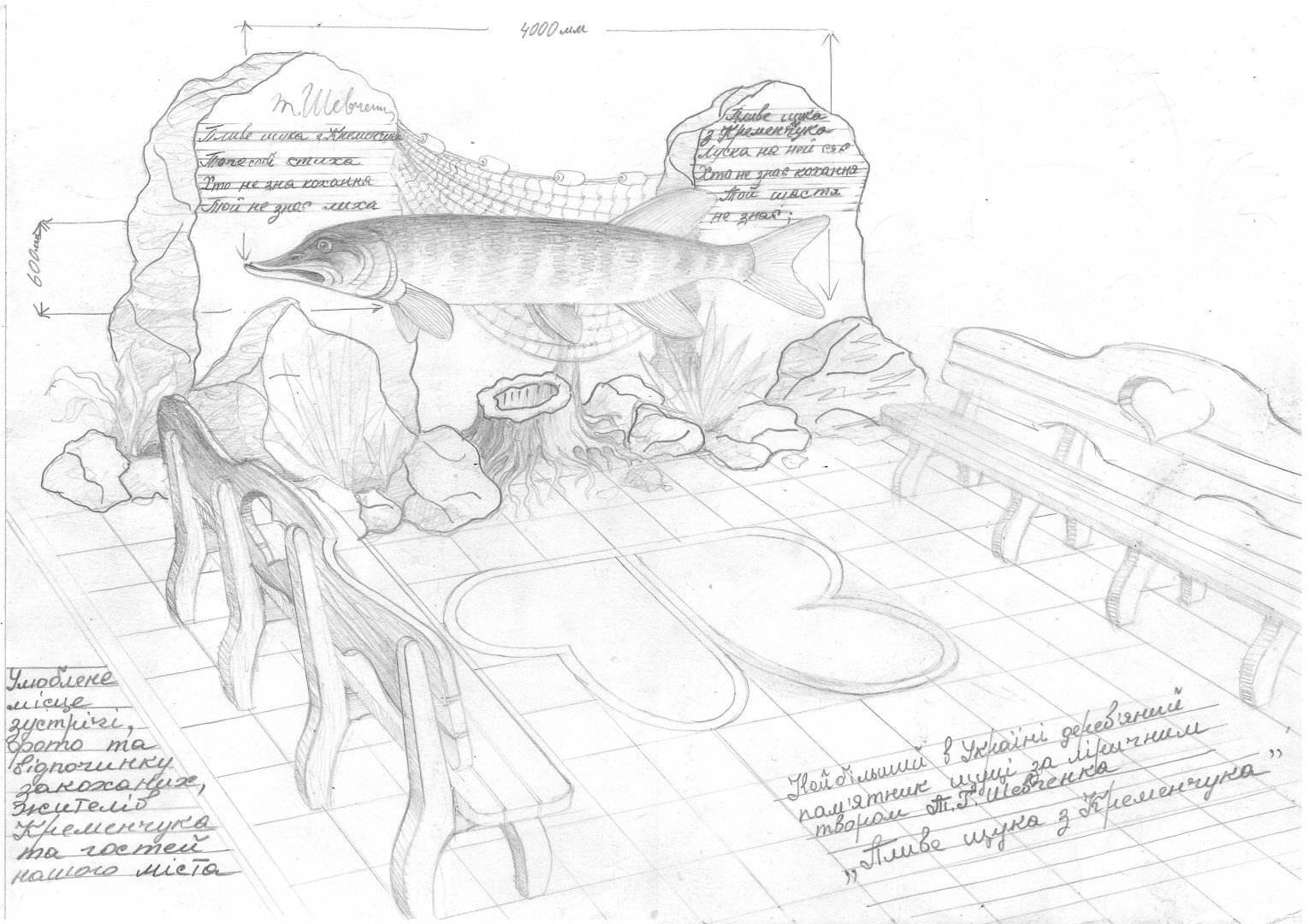У парку Миру хочуть встановити найбільший в Україні пам'ятник щуці з дерева розміром 4х0,6 метра.