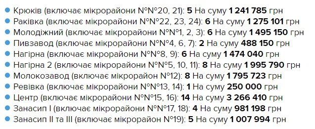 Давайте детальніше розглянемо пропозиції по мікрорайонах:
