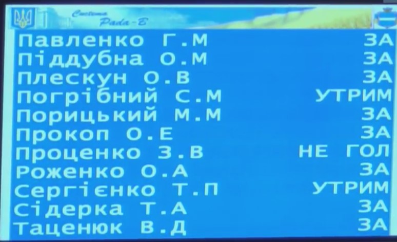 Среди воздержавшихся остались депутаты «Укропа» (Александр Кальченко, Александр Коркишко, Сергей Погребной) и «Поруч» (Андрей Макаров, Елена Мосиенко).