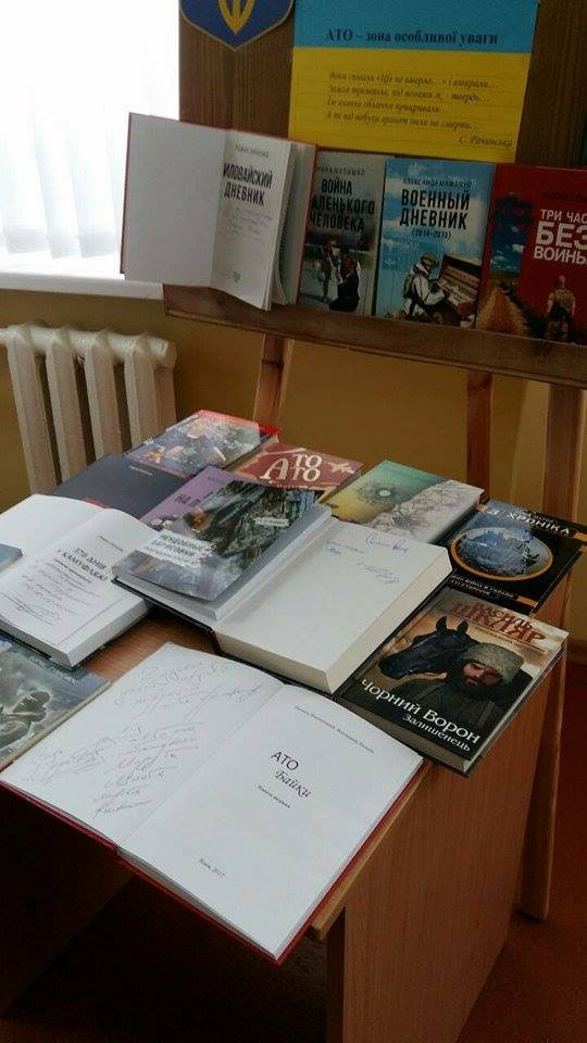 Кременчуцька гімназія №5 отримала набір книг про російсько-українську війну на сході України. 18 книг серед яких є книги з автографами авторів художньою мовою описують перебіг АТО та цікаві історії українських бійців. Учням гімназії, які зможуть почитати книги у шкільній бібліотеці передав Іван Балацький.