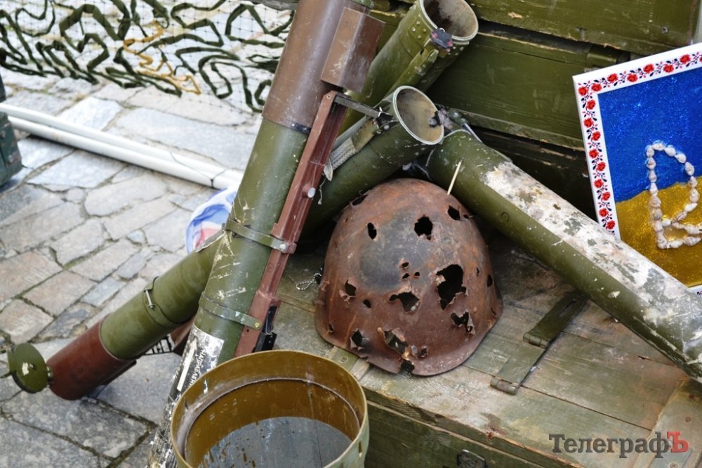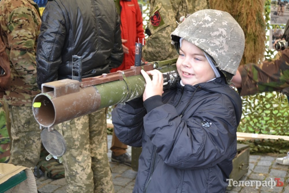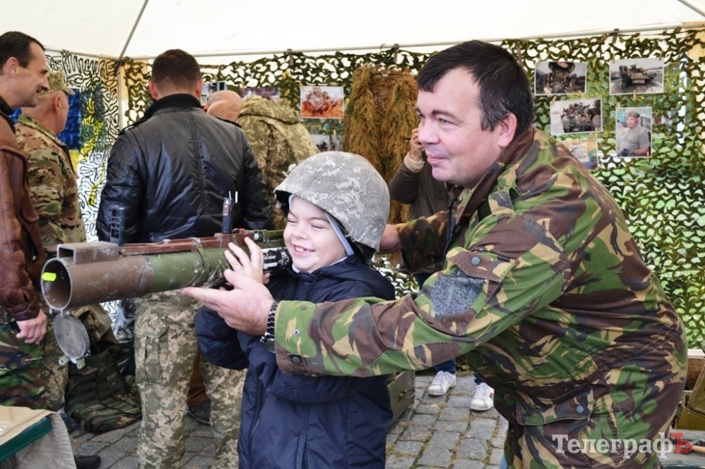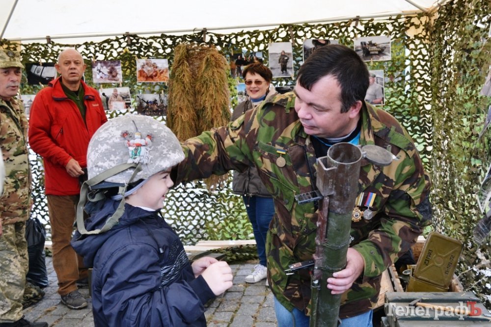 На площі можна роздивитися військову зброю та приміряти каску, а також послухати історії учасників бойових дій.