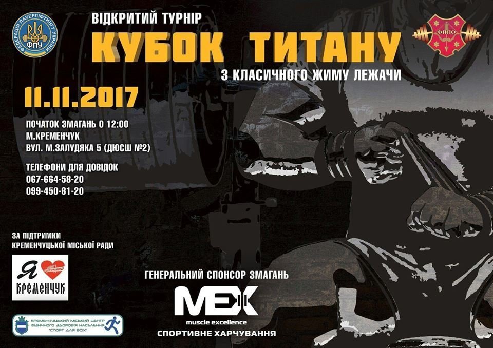 Для участі в змаганнях необхідно заповнити та надіслати попередню заявку на електронну адресу titan-cup@yandex.ua. Прийом заявок здійснюється до 09.11.2017.