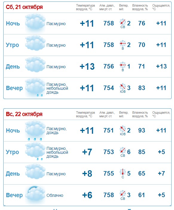 Такой же прогноз на субботу-воскресенье, 21-22 октября, дает и Sinoptik.