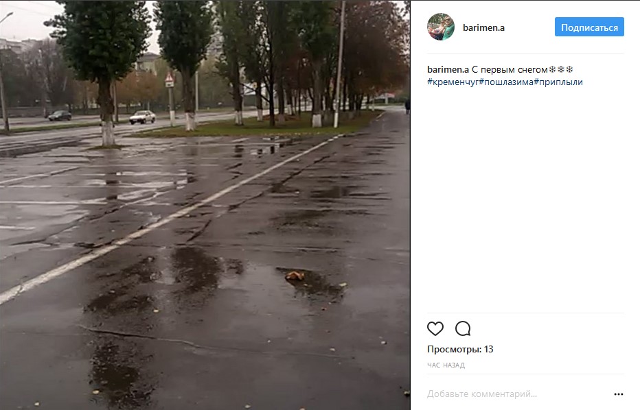 Сегодня, 26 октября, в Кременчуге выпал первый снег. Ну, как снег... Больше, наверное, дождь, но снег всё-таки тоже был. Те кременчужане, кто успел сделать фото или видео, уже похвастались снежком в соцсетях и ТЪ в том числе.