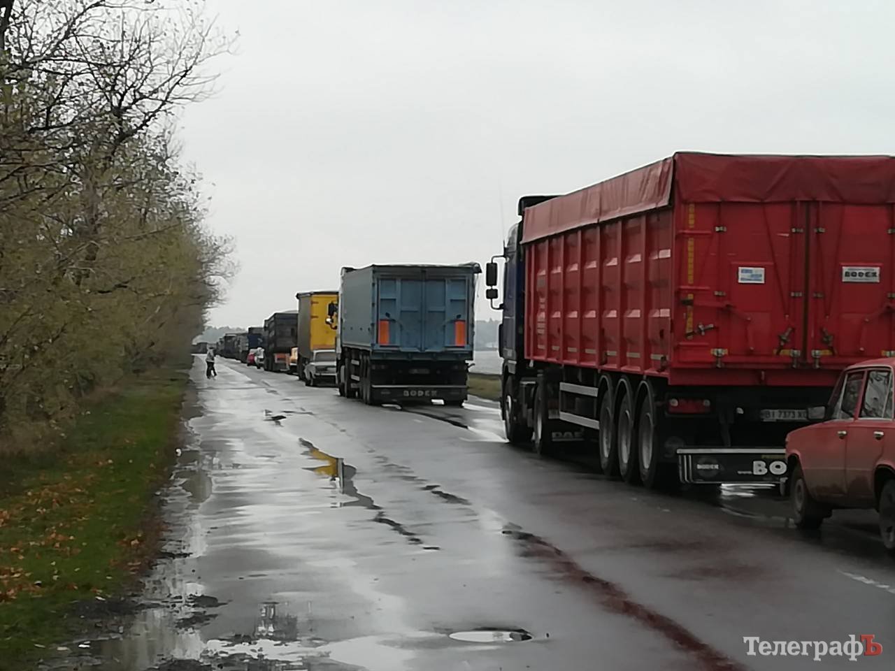 Многие водители были не в курсе того, что проезд через плотину Кременчугской ГЭС будет закрыт и попали в пробку. В объезд фуры не едут, так как через Крюковский мост их не пускает полиция.