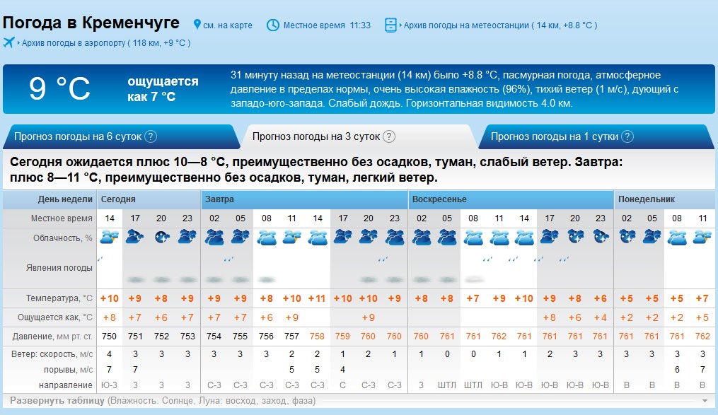 Gismeteo предупреждает кременчужан о небольшом дожде днём субботы, 4 ноября. В воскресенье, 5 ноября, осадков не обещает. Не стоит рассчитывать на температуру воздуха ниже +6ºС и выше +10ºС.