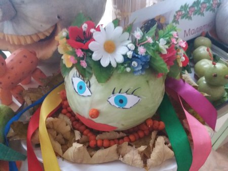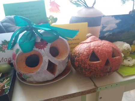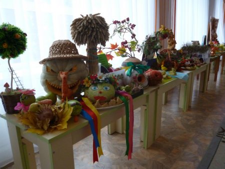 Діти з батьками дитячого садочку №2 з капусти, гарбузів, каштанів, шишок та інших природних матеріалів підготували тематичну виставку “Осіннє різнобарв'я”.