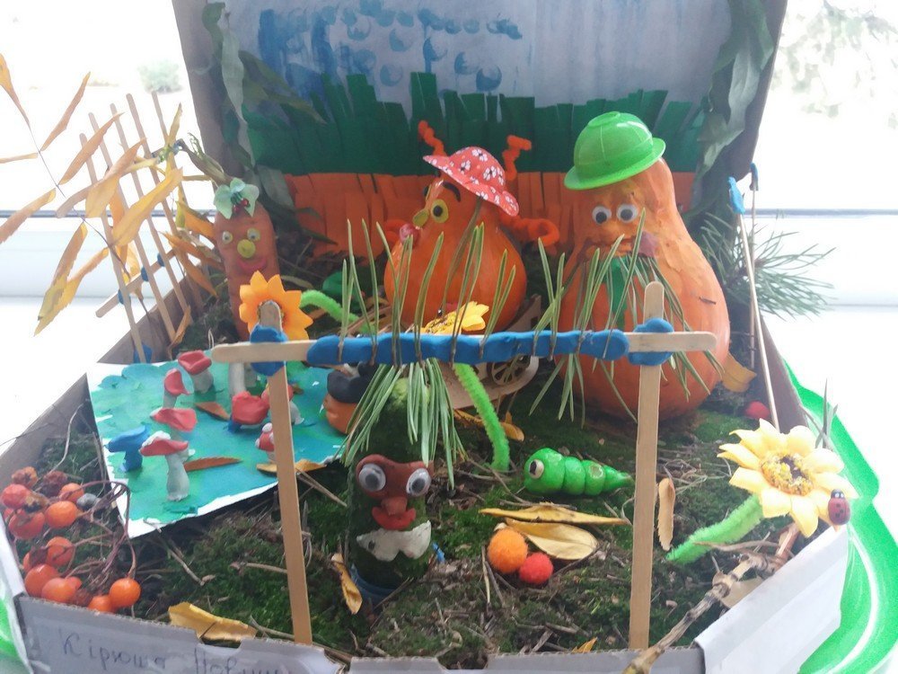Діти з батьками дитячого садочку №2 з капусти, гарбузів, каштанів, шишок та інших природних матеріалів підготували тематичну виставку “Осіннє різнобарв’я”.