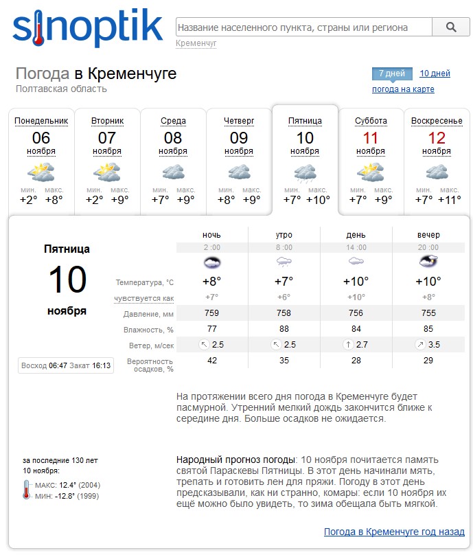На Gismeteo дощовиту погоду нам обіцяють лишень у четвер, 9 листопада.