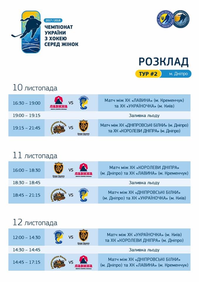 За інформацією прес-служби ХК «Кременчук», кременчуцька команда відкриватиме тур поєдинком проти «Україночки». В іншому матчі першого ігрового дня відбудеться дніпровське дербі – «Королеви Дніпра» проти «Дніпровських Білок». Лідер чемпіонату – харківська команда «Пантери» – другий тур пропускає. Цікаво, що за будь-яких обставин лідер чемпіонату зміниться після матчів у Дніпрі. Проте у порівнянні з основними конкурентами харків’янки матимуть три матчі в запасі.