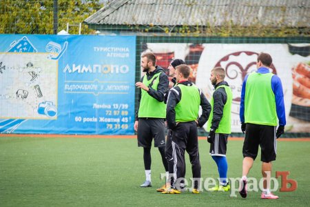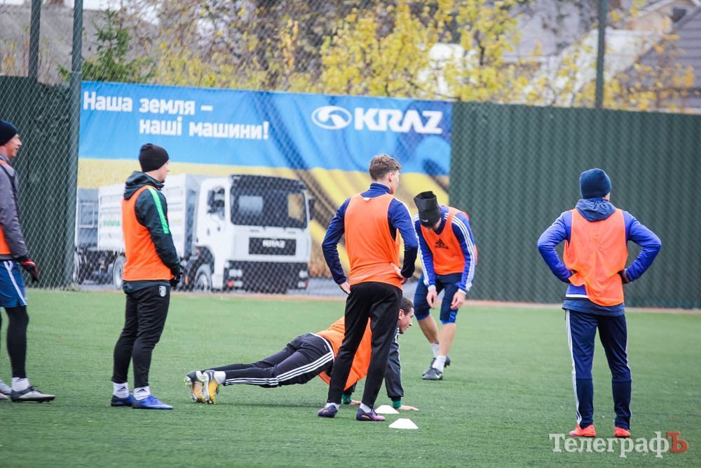 Перед грою ми зазирнули на тренування до футболістів «Кременя». До гри з лідером чемпіонату гравці готуються відповідально. В залежності від програми тренерського штабу на футболістів даються різноманітні навантаження. Гравці відпрацьовують «штурм» воріт як з упора лежачи так і сидячи спиною. Ніж сто раз читати, краще раз глянути: