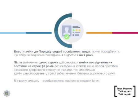 - Изменение процедуры выдачи водительских прав. Они будут выдаваться в первый раз на срок до 2 лет и автоматически продляться на срок до 30 лет, при условии, что за два года, водитель-новичок не нарушит ПДД более 3 раз. В противном случае, водитель должен будет повторно сдать экзамен на право вождения авто.