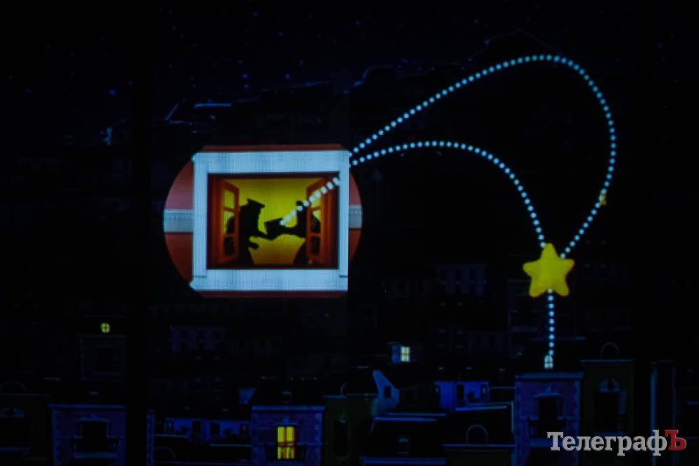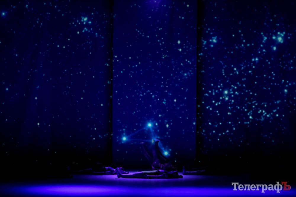 Эту историю воплощали в жизнь около 70 детей ансамбля танца «Счастливое детство». 5 экранов, установленных на сцене, перемещали зрителя то в ночной город, то на зеленые просторы.