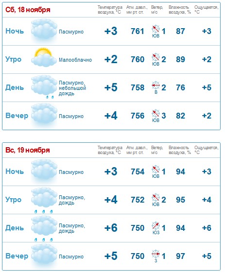 На протяжении всего дня субботы, 18 ноября, будет стоять облачная погода, обещает нам Sinoptik. Без осадков.