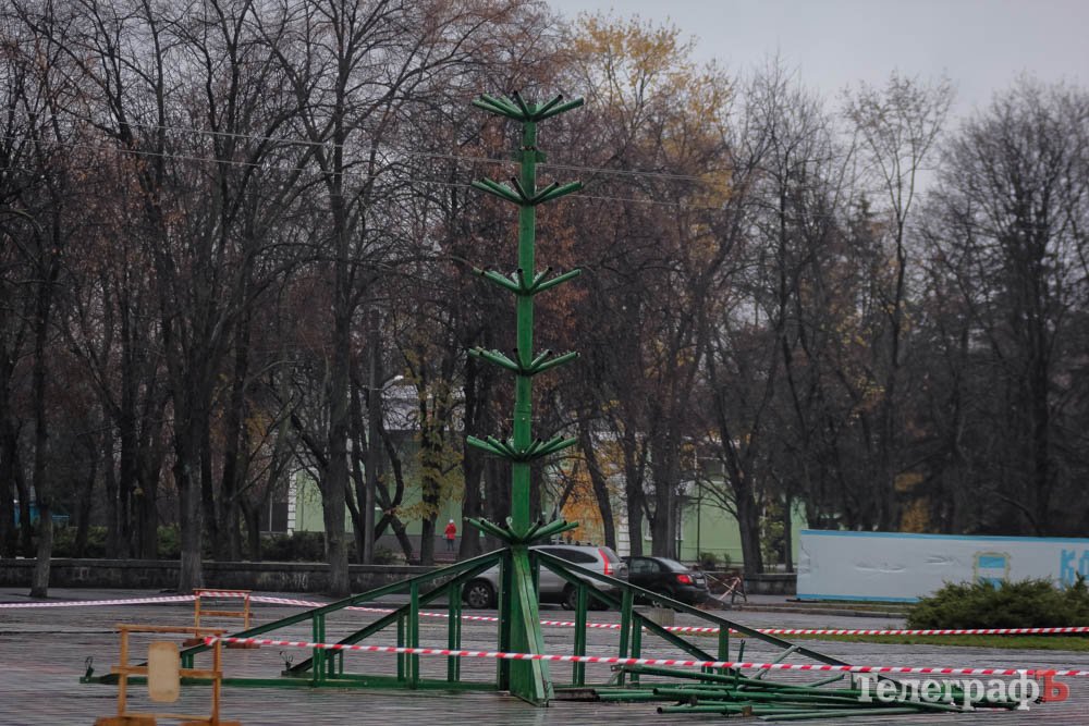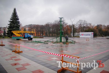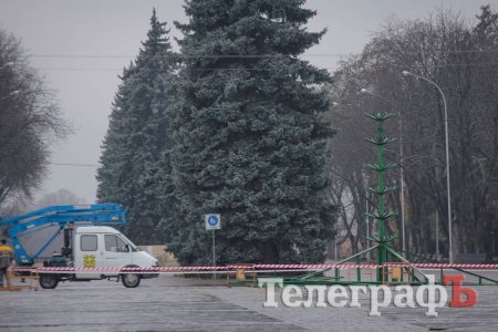 В Кременчуге начали устанавливать главную новогоднюю ёлку
