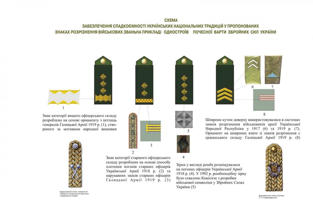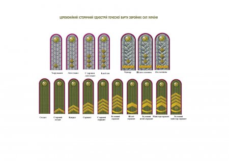 - нові знаки розрізнення військових звань та розміщення їх на погонах від ліцеїстів до генералів