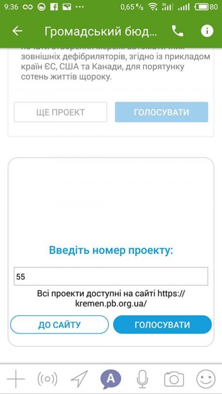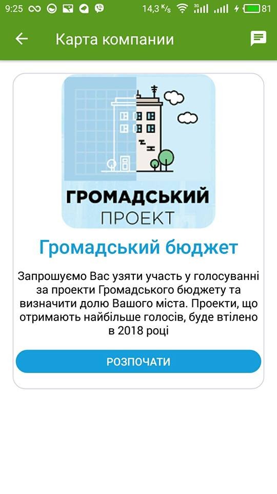 - Нарешті сталося те, на що ми усі чекали - «ПриватБанк» доєднав Кременчук до голосування через додаток «Приват24 Украина» (велика подяка Egor Avetisov). До речі, Кременчук став 3-м містом, після Києва та Львова, які долучилися до такої можливості! Тепер усі користувачі (а таких 140 тисяч) цього додатку з локацією Кременчук отримають повідомлення про можливість проголосувати за проекти «Громадського бюджету» у м. Кременчук, - повідомляють представники «Громадського бюджету».