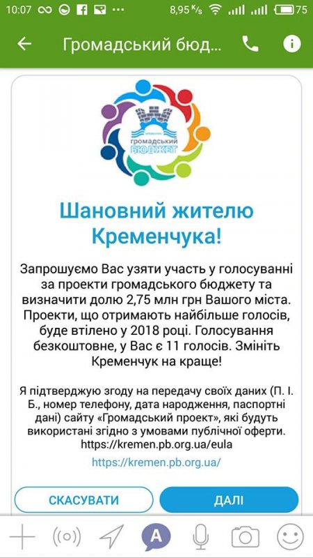Кременчук у трійці міст України з голосуванням «Громадського бюджету» через додаток