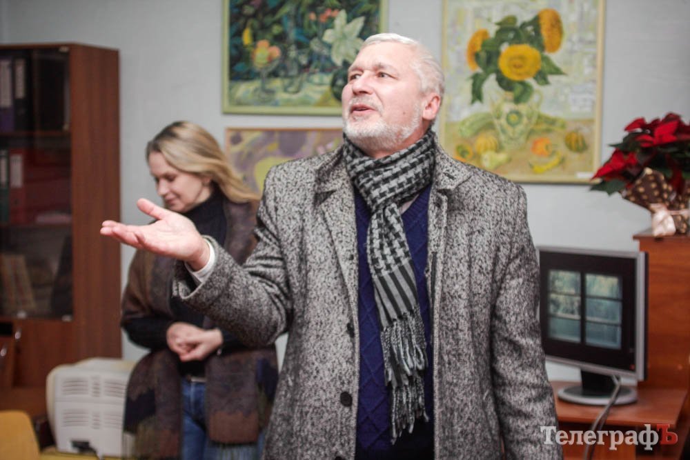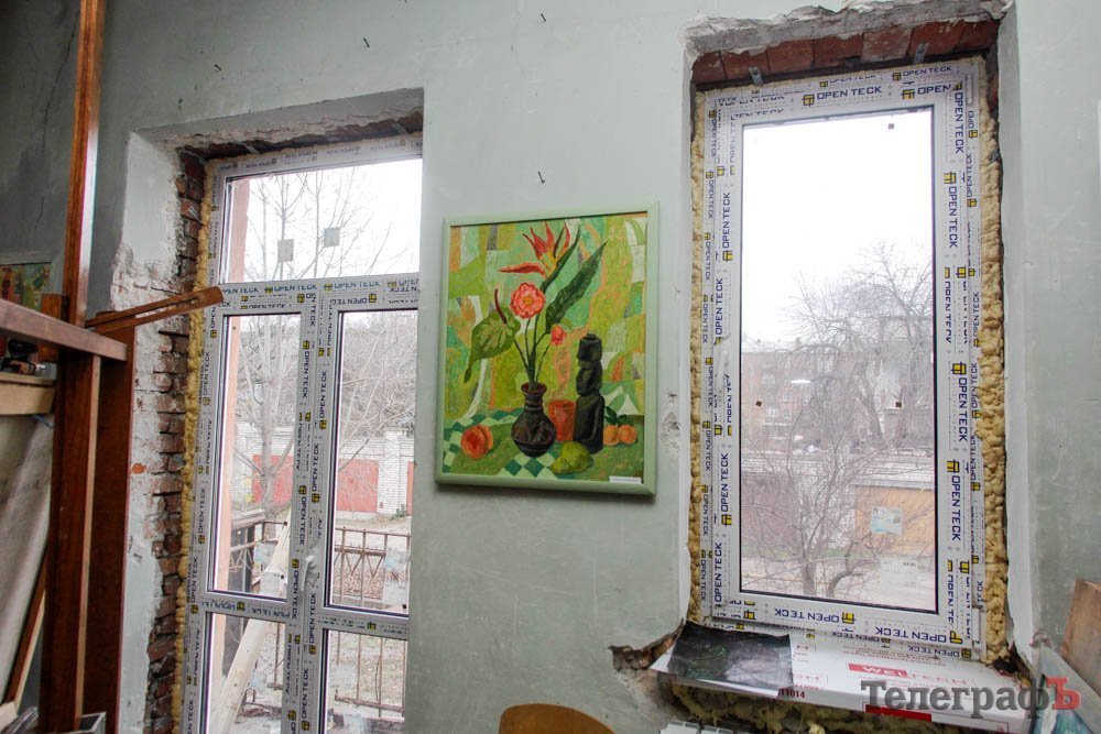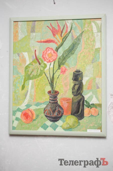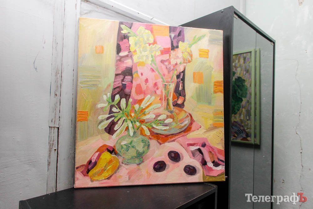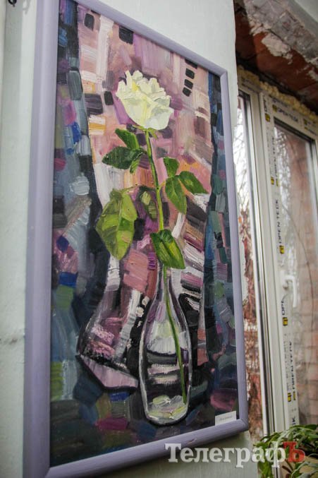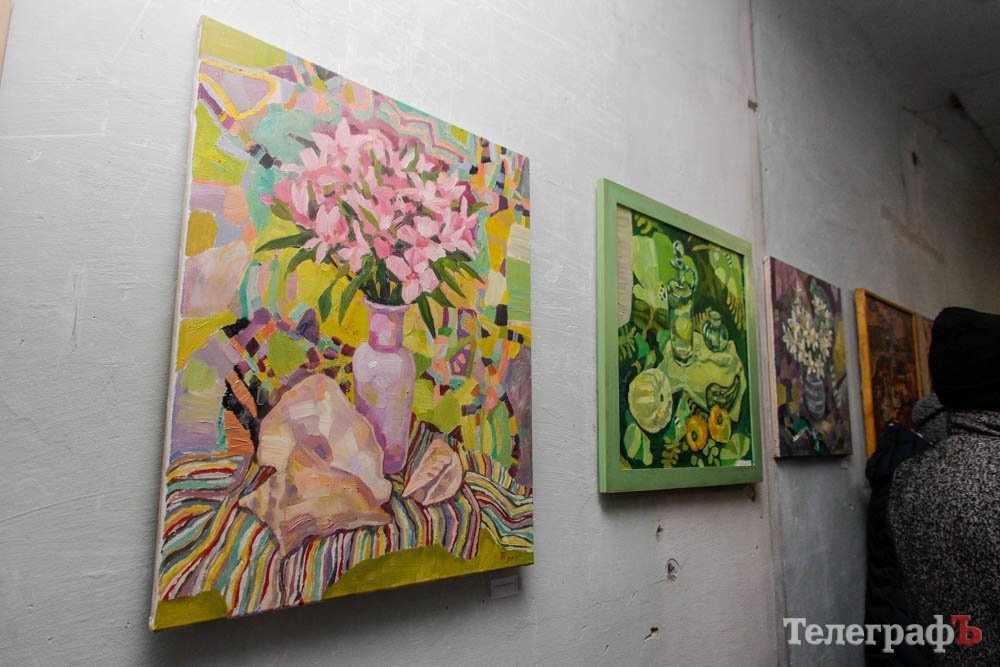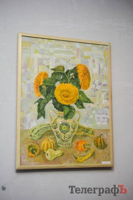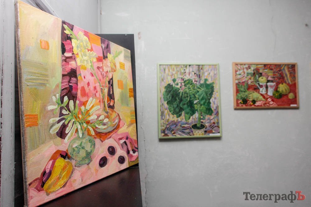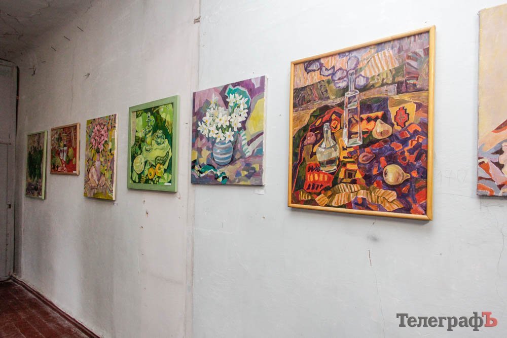 Выставка натюрмортов открылась в очень нестандартном помещении – это как-бы выставочный зал Союза художников. Глядя на его мрачные облезлые стены, можно в полном объеме оценить сложности существования творческой личности – в данном случае, художника – в условиях современной Украины. И в Кременчуге конкретно.
