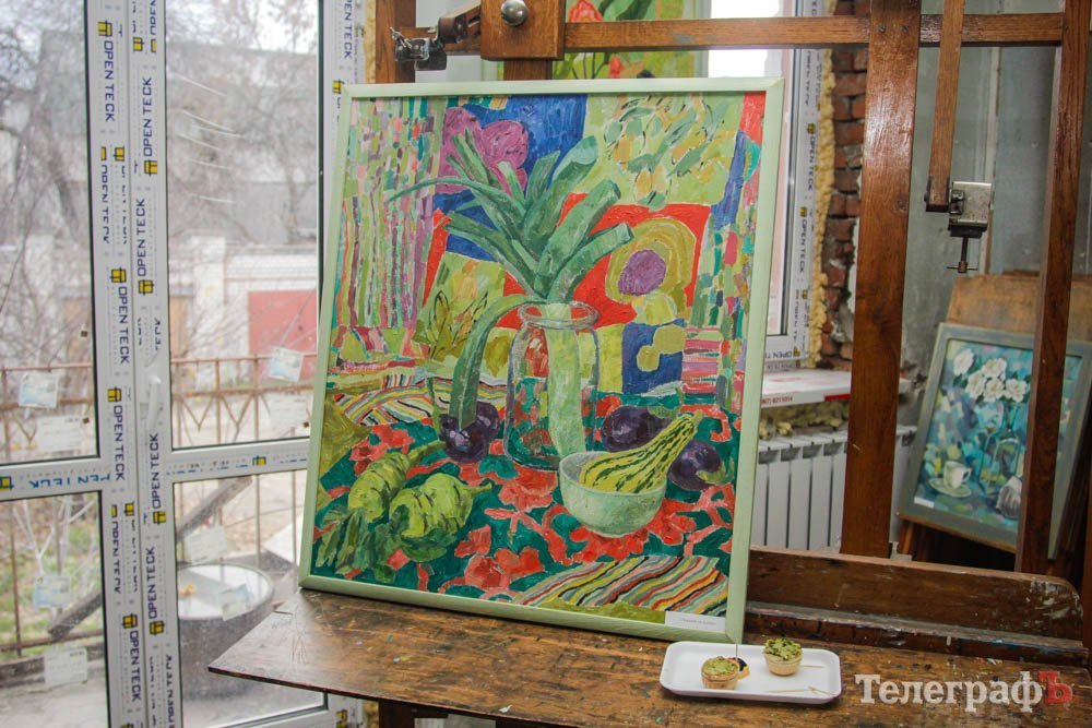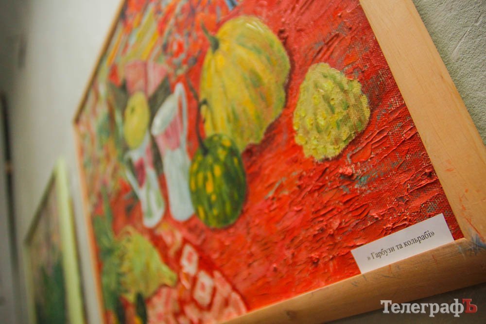 – Давайте не будемо плакатися і казати, що все погано – насправді все кайфово, все чудово! Я заходжу, купую гарбуз і починаю його малювати, бо він чудовий, він дуже гарний. Навколо нас стільки чудових квітів, такі гарні овочі. Можна оточувати себе гарними речами і так піднімати собі настрій! – сказала кременчужанка Татьяна Шуляк, открывая свою выставку натюрмортов.