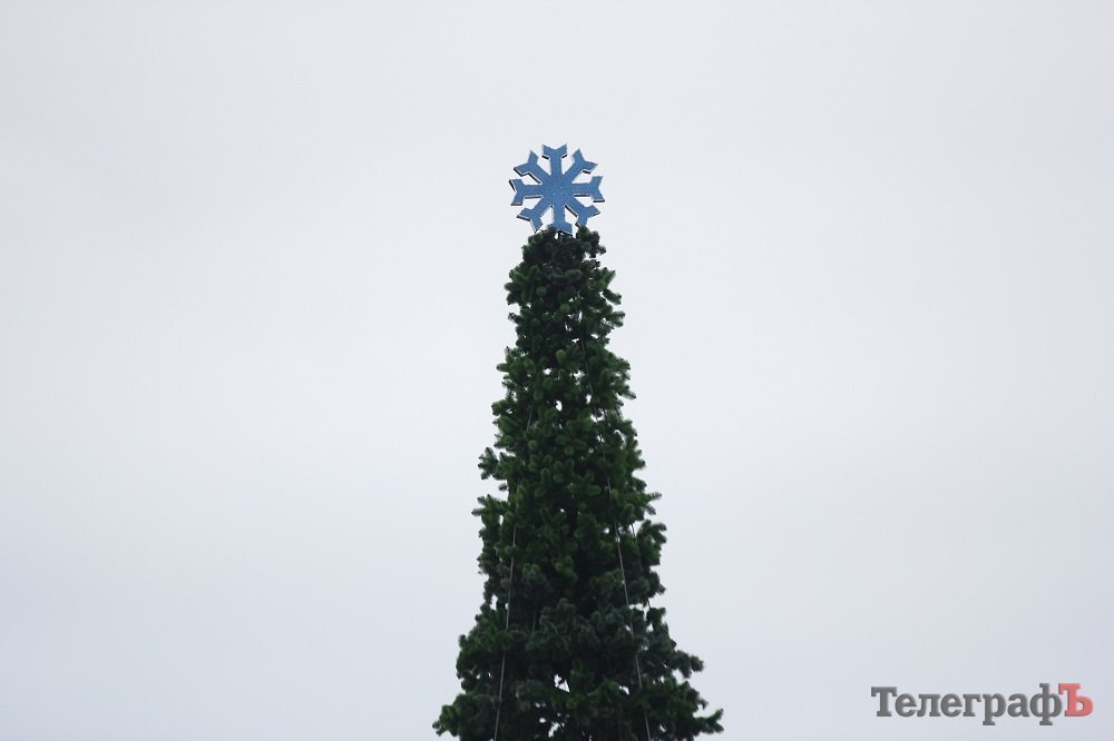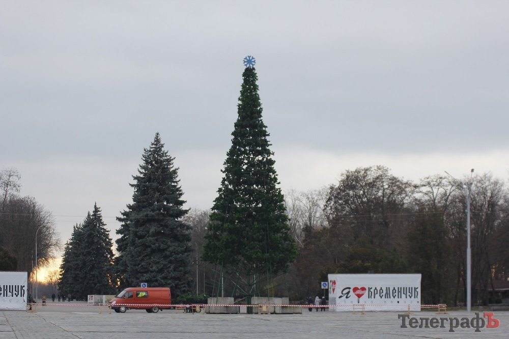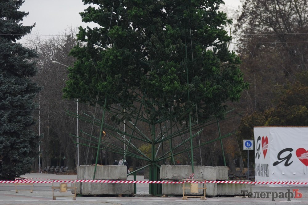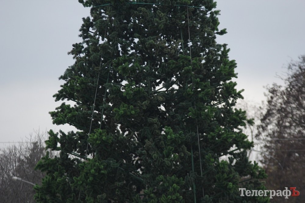 24 ноября коммунальники, судя по внешнему виду елки, уже почти закончили устанавливать ветки у будущего главного украшения Кременчуга, так что новогодняя красавица уже почти «оделась».