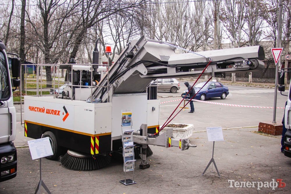 Крюковский вагоностроительный завод представил подметально-уборочные машины «Чистый шлях» и «Чистый шлях-2» на шасси КрАЗ. Как отметил первый вице-мэр Кременчуга Владимир Пелипенко, эта техника уже хорошо зарекомендовала себя на уборке кременчугских улиц. Губернатор поинтересовался ценой «Чистого шляха-2». Глава правления ПАО КВСЗ Анатолий Шабала отметил, что на сегодня это в пределах 4,5-4,75 млн грн.