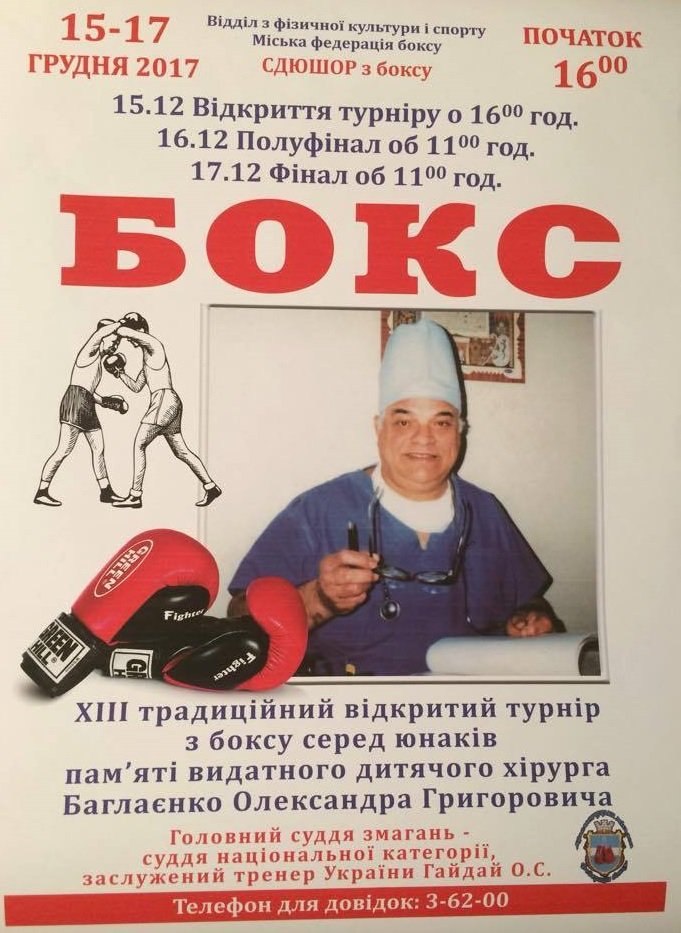 Що: ХІІІ традиційний відкритий турнір з боксу серед юнаків пам’яті видатного дитячого хірурга Олександра Баглаєнка