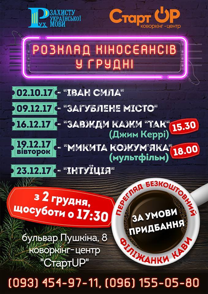 Розклад кіносеансів у грудні: