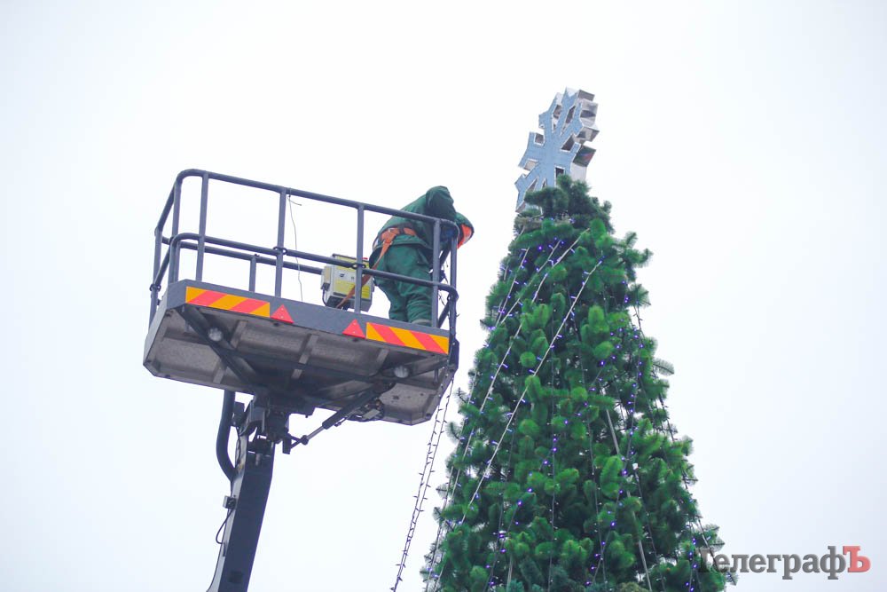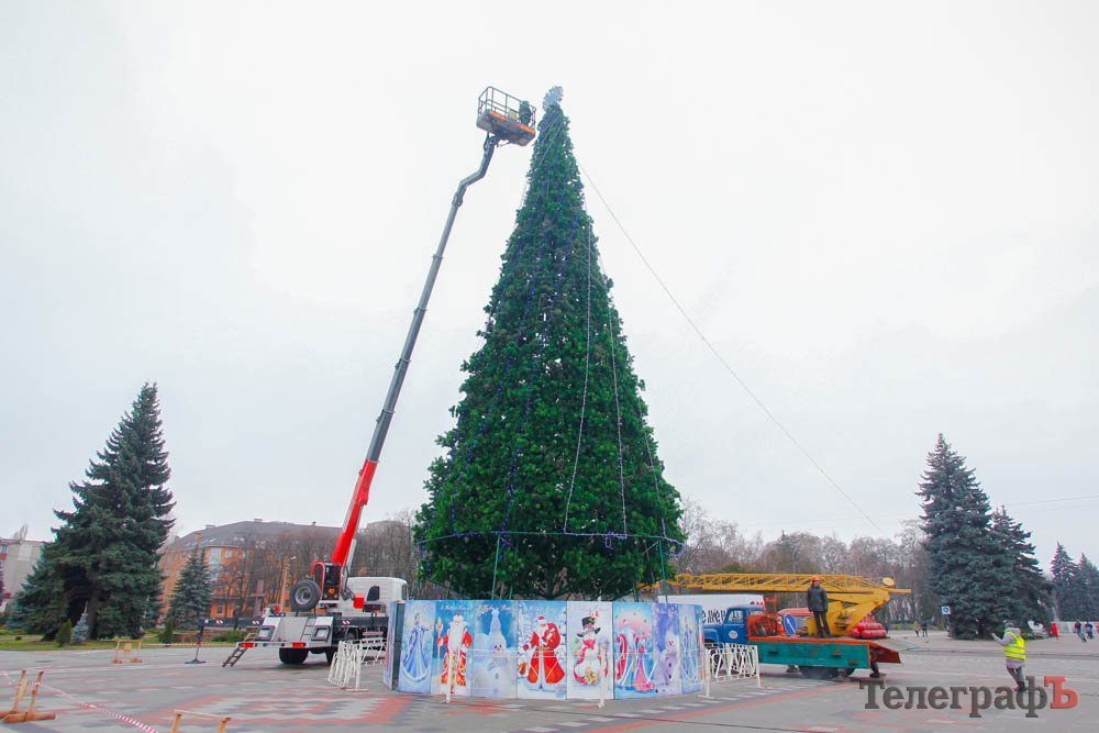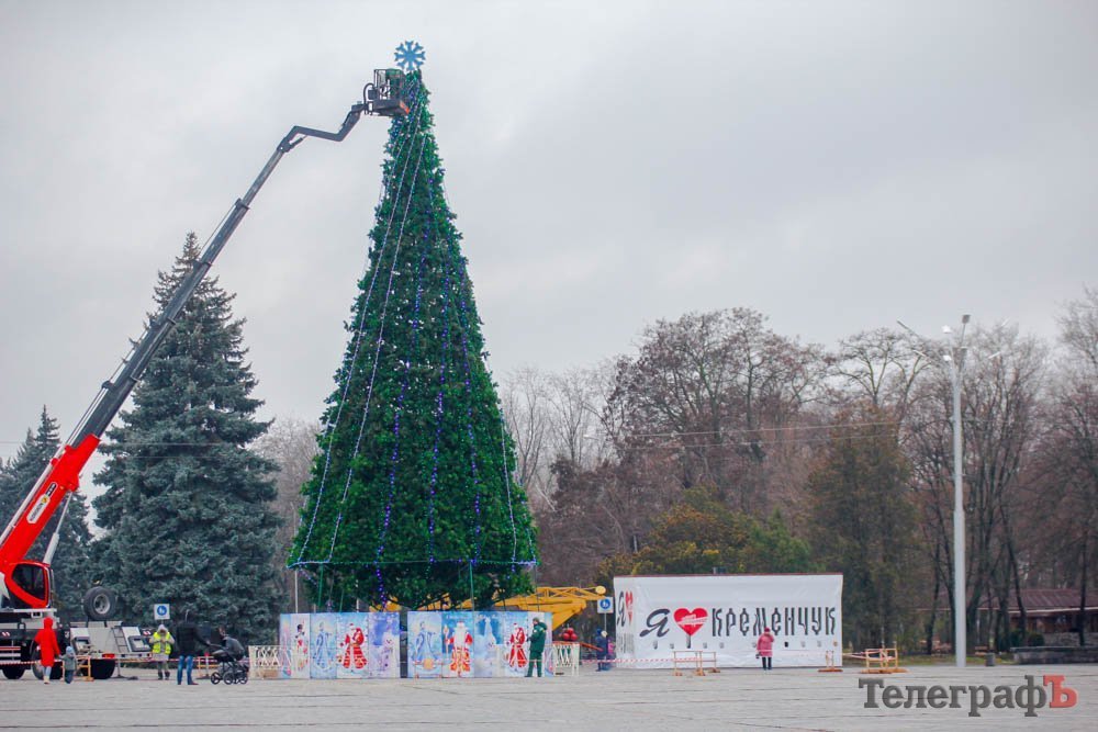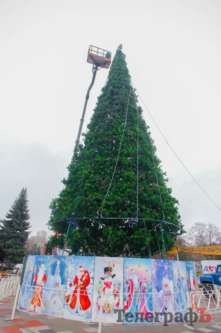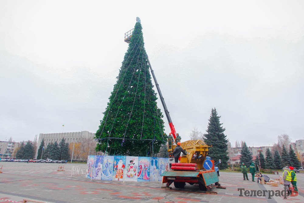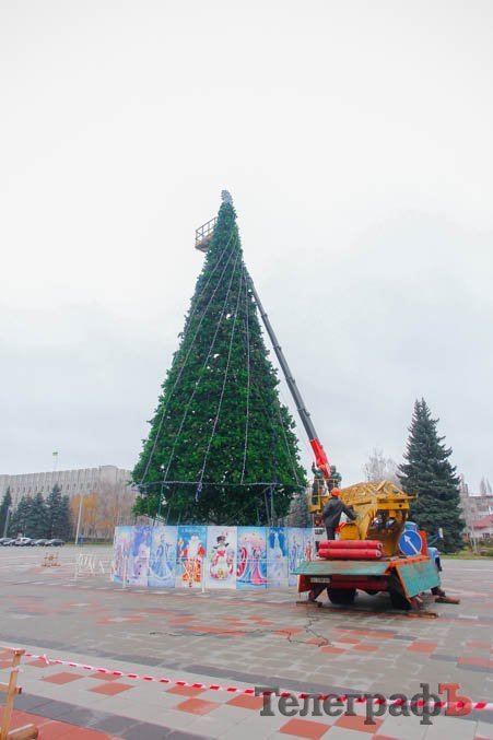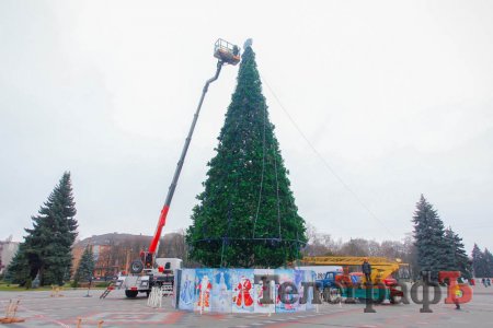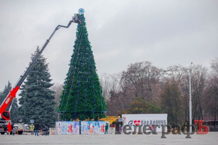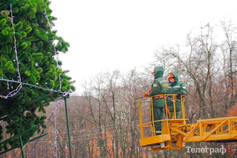 В пятницу, 24 ноября, коммунальники уже почти закончили устанавливать ветки у будущего главного украшения Кременчуга.