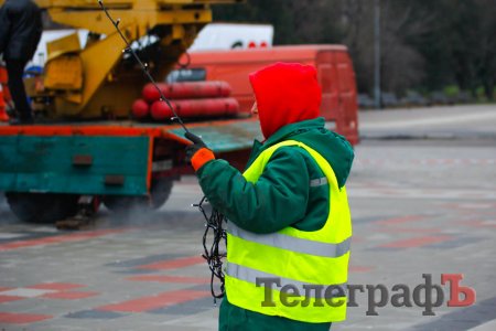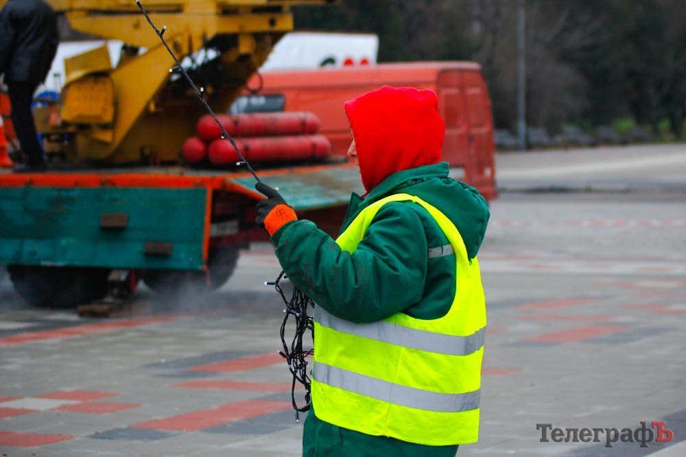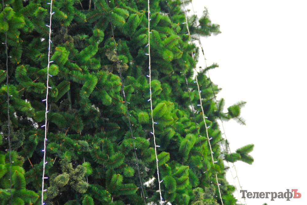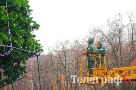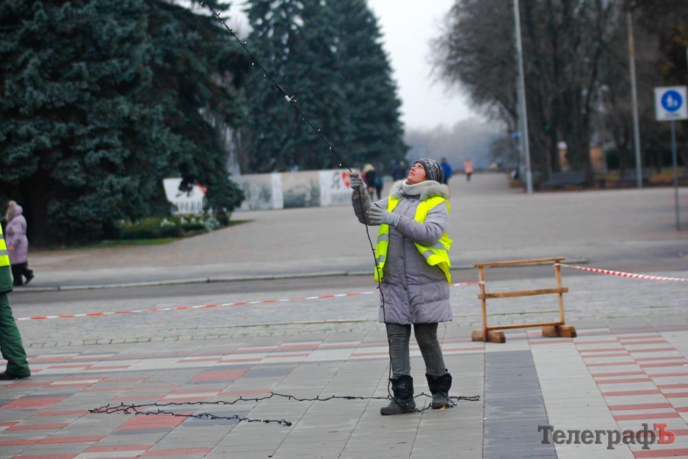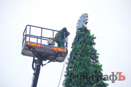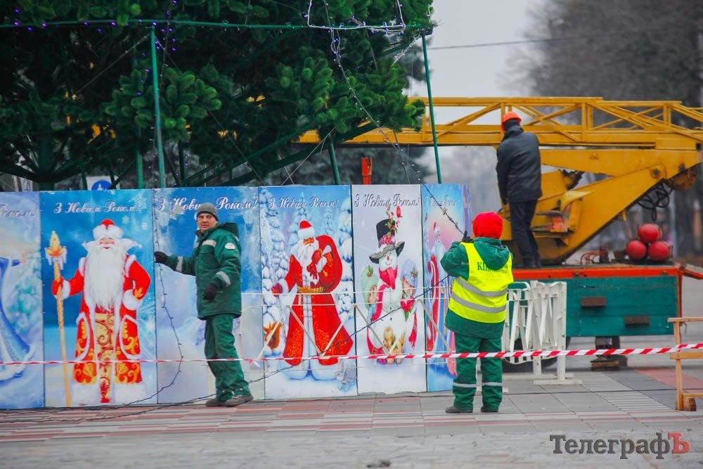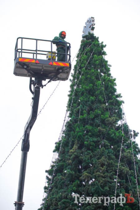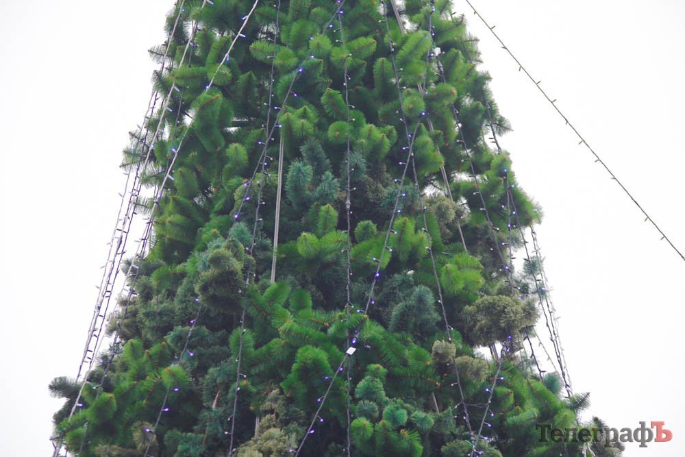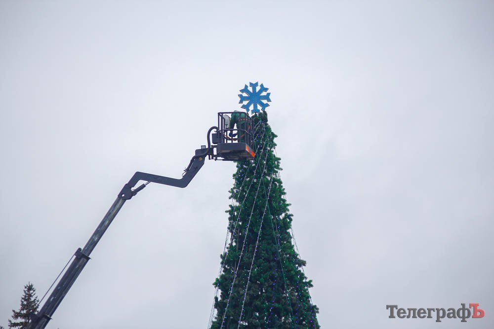В пятницу, 24 ноября, коммунальники уже почти закончили устанавливать ветки у будущего главного украшения Кременчуга.