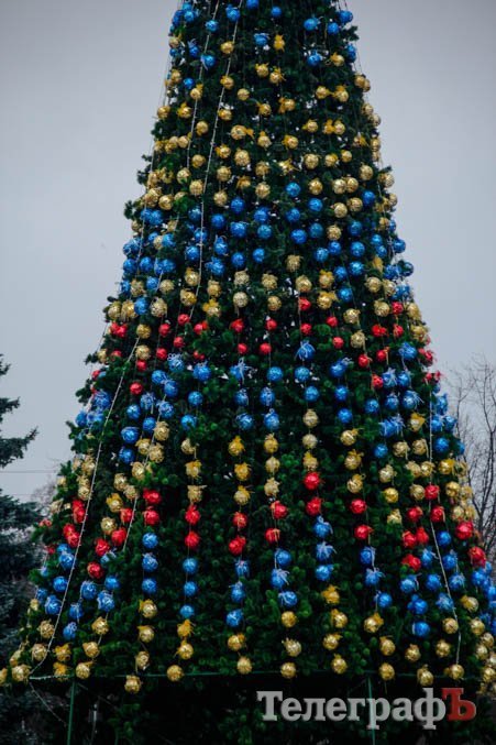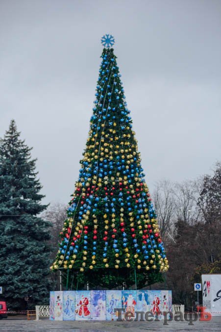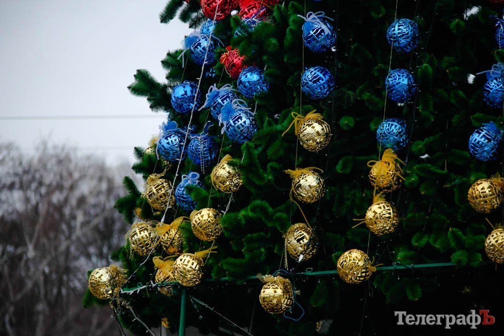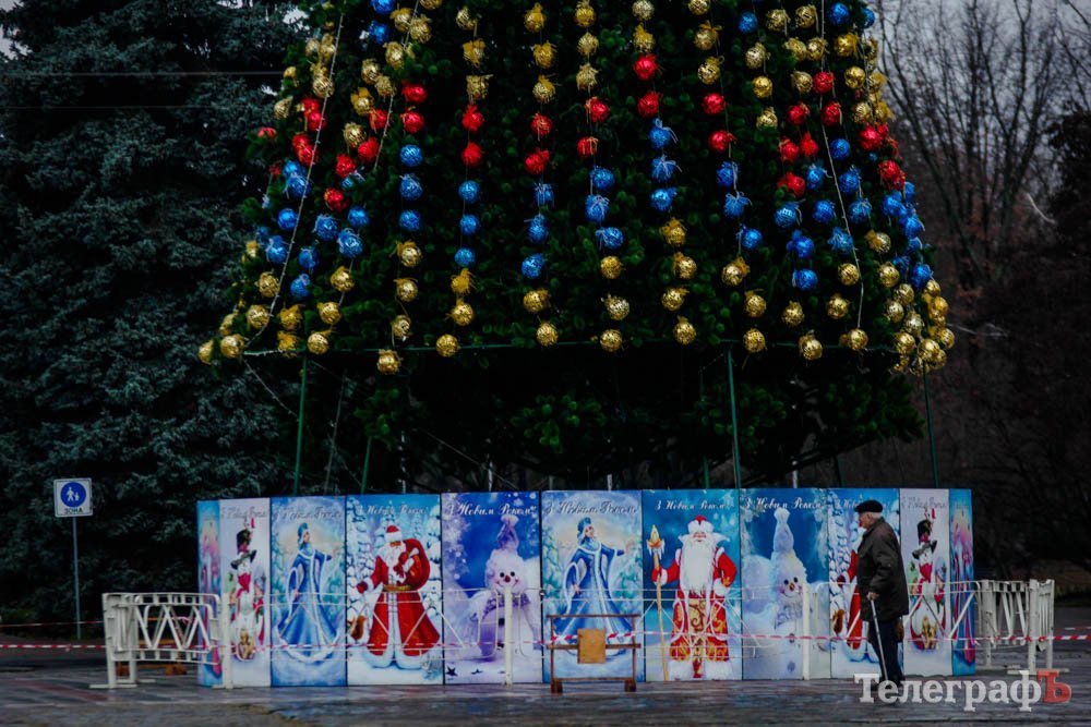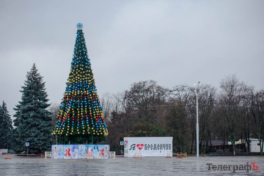 В пятницу, 24 ноября, коммунальники уже почти закончили устанавливать ветки у будущего главного украшения Кременчуга.