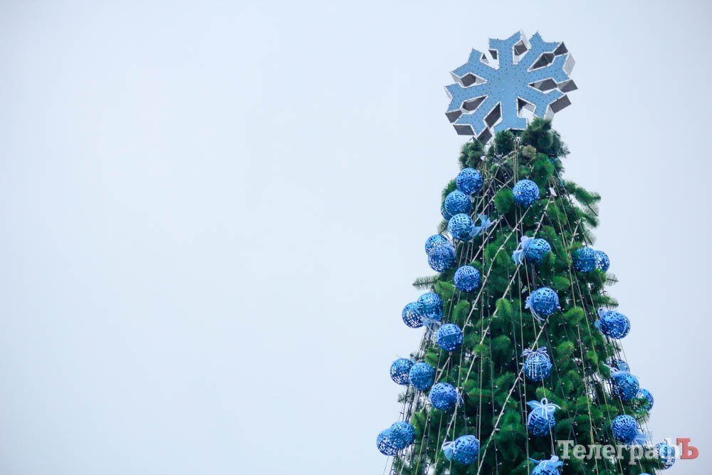 В первый день зимы, 1 декабря, новогоднюю ёлочку на площади Победы нарядили разноцветными шарами. В этом году к золотым и синим игрушкам прибавились шары красного цвета.