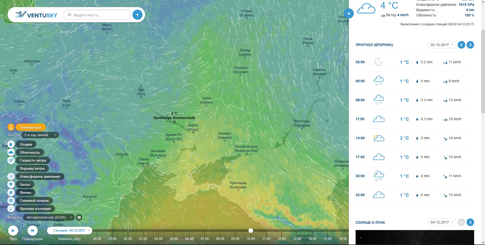 За прогнозом Ventusky, засніжить уже сьогодні вночі, 4 грудня. Сніжок нам прогнозують і на вівторок, 5 грудня, і на середу, 6 грудня. В ніч на четвер, 7 грудня, сніг зміниться дощем. Температура повітря триматиметься на рівні +1...+3ºС.