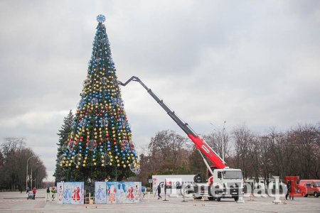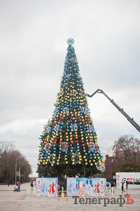 30 ноября, коммунальники наконец-то начали украшать главное новогоднее дерево города, обмотав его разноцветными гирляндами.