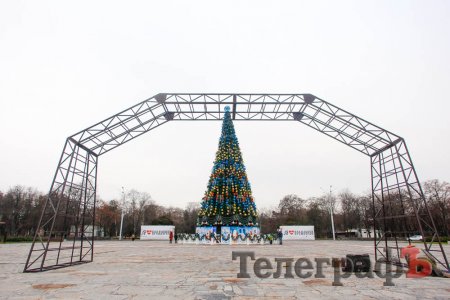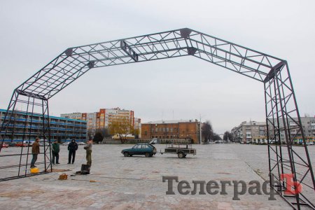 11 декабря на главной площади Кременчуга работники КП «Благоустройство Кременчуга» начали монтировать арку, которая будет входом в Новогодний городок. «Город» (торговые точки) на площади откроется 17 декабря и будет работать до 8 января.