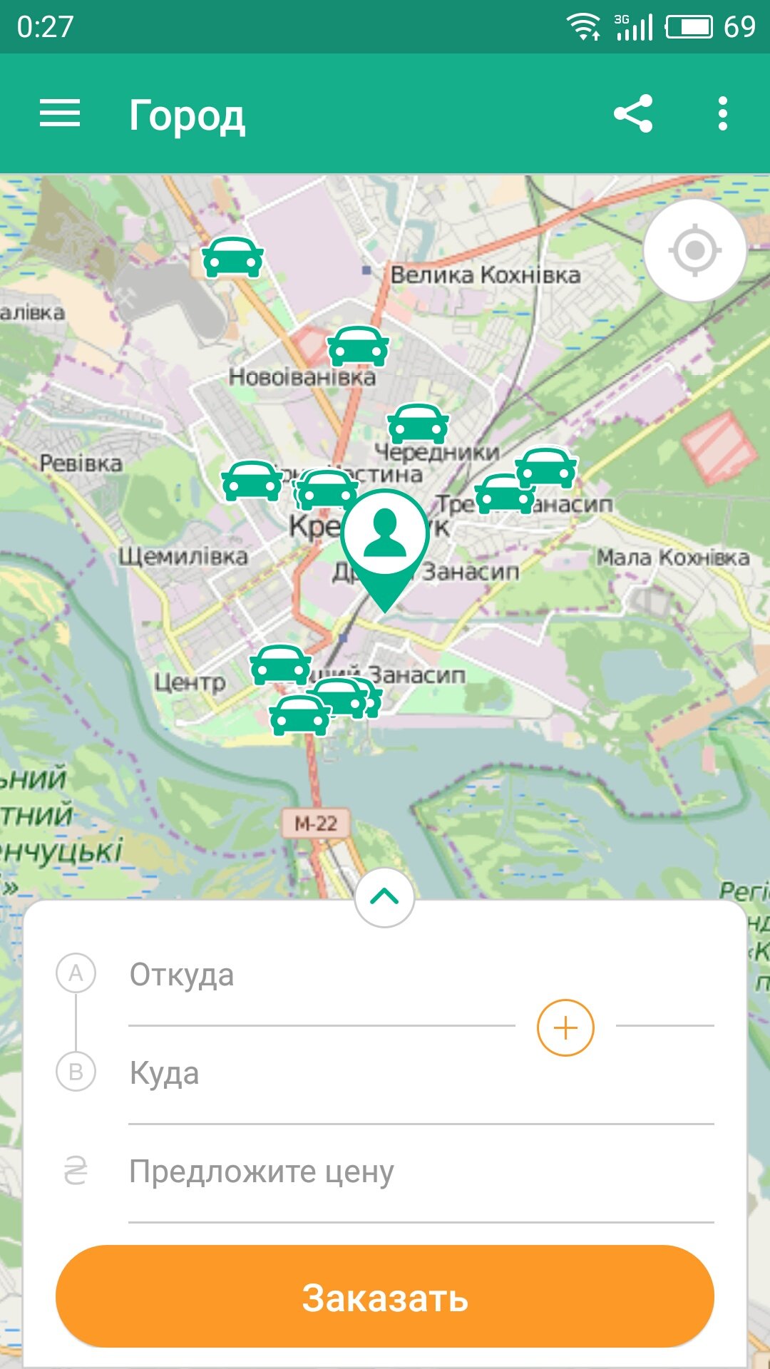 Після того, як ви натисните кнопку «Замовити», додаток почне пошук водіїв, готових вас відвезти по даному маршруту за вказану ціну.