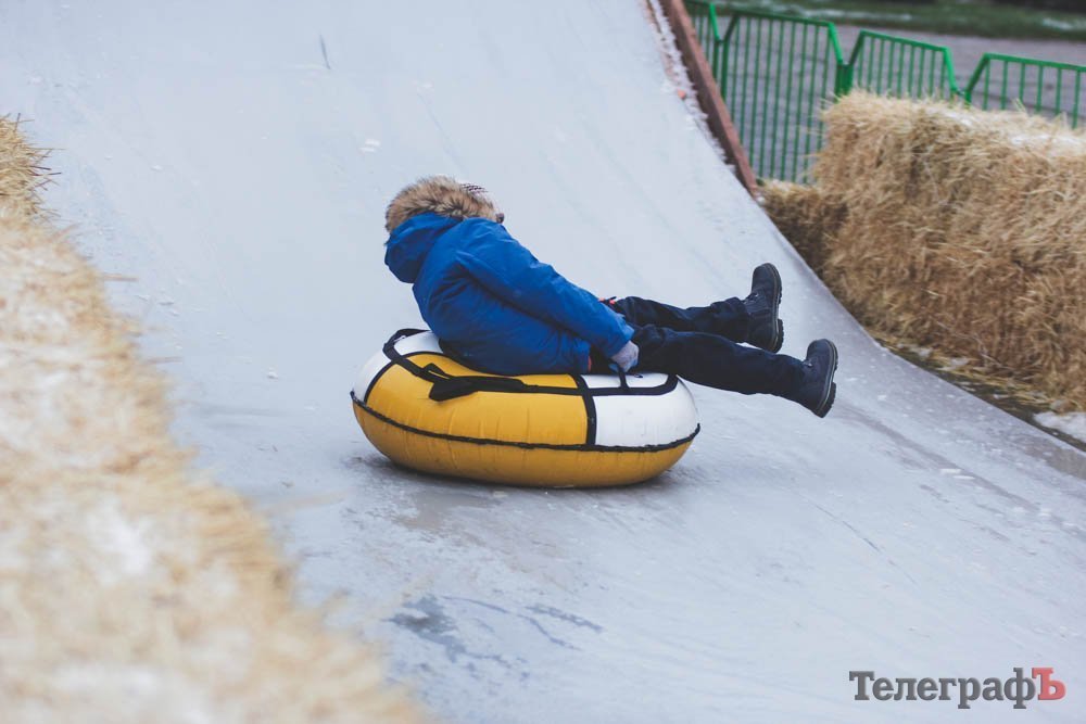 21 декабря «Телеграф» потестил горку, которая находится на площади Победы. На ней можно кататься даже когда нет снега. Мальчики-инструкторы заботливо поливают горку мыльным раствором и получается не хуже снега. Катаемся на специальных кругах, попа не мокнет.