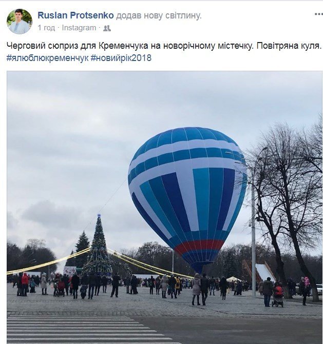 Сьогодні, 23 грудня, у Кременчуцькому Різдвяному містечку запрацював ще один атракціон – справжнісінька повітряна куля. Про це на своїй сторінці у Facebook повідомив віце-мер Руслан Проценко. Через надто вітряну погоду, підняти кулю у повітря не вдалося, але організатори обіцяють, що атракціон працюватиме впродовж усіх Різдвяних свят.
