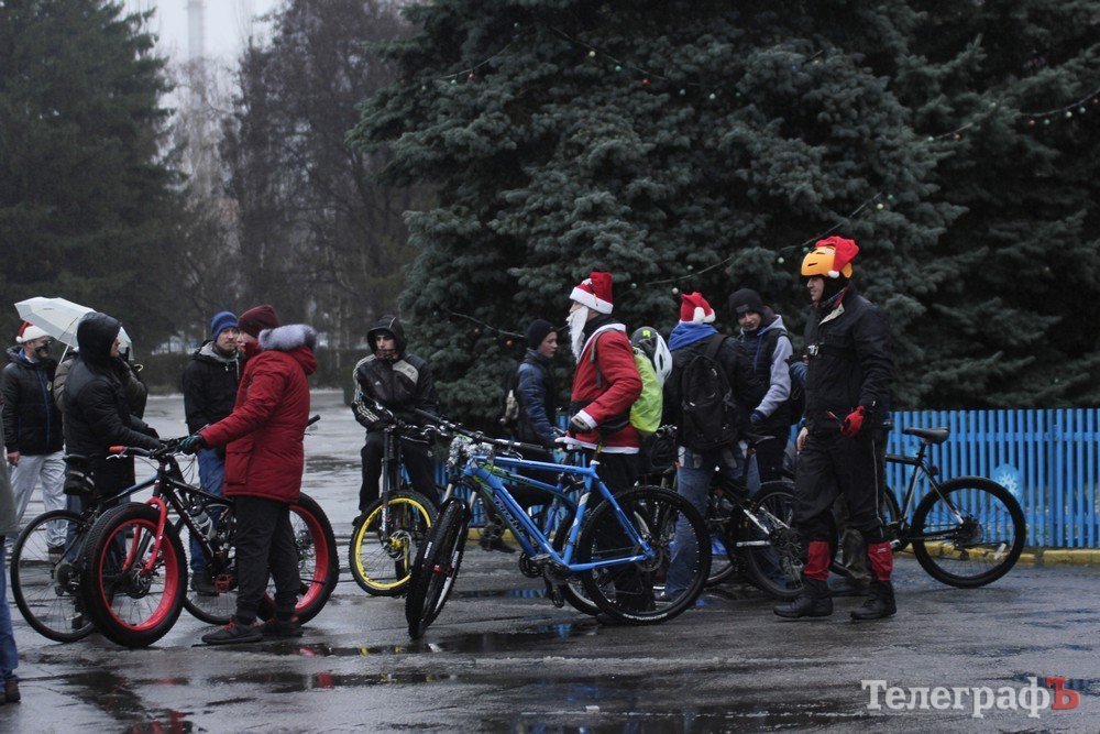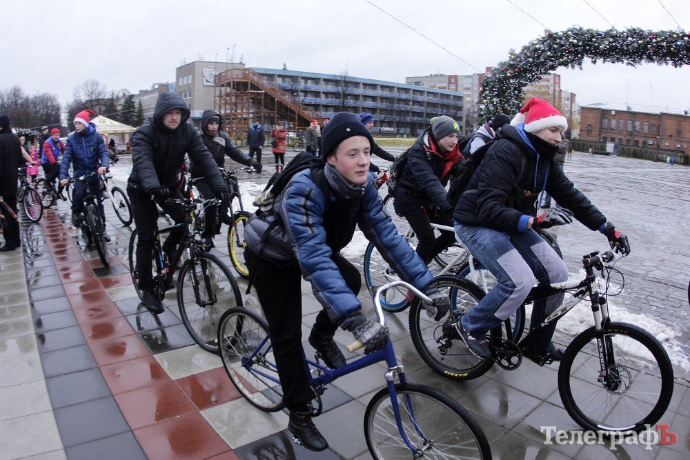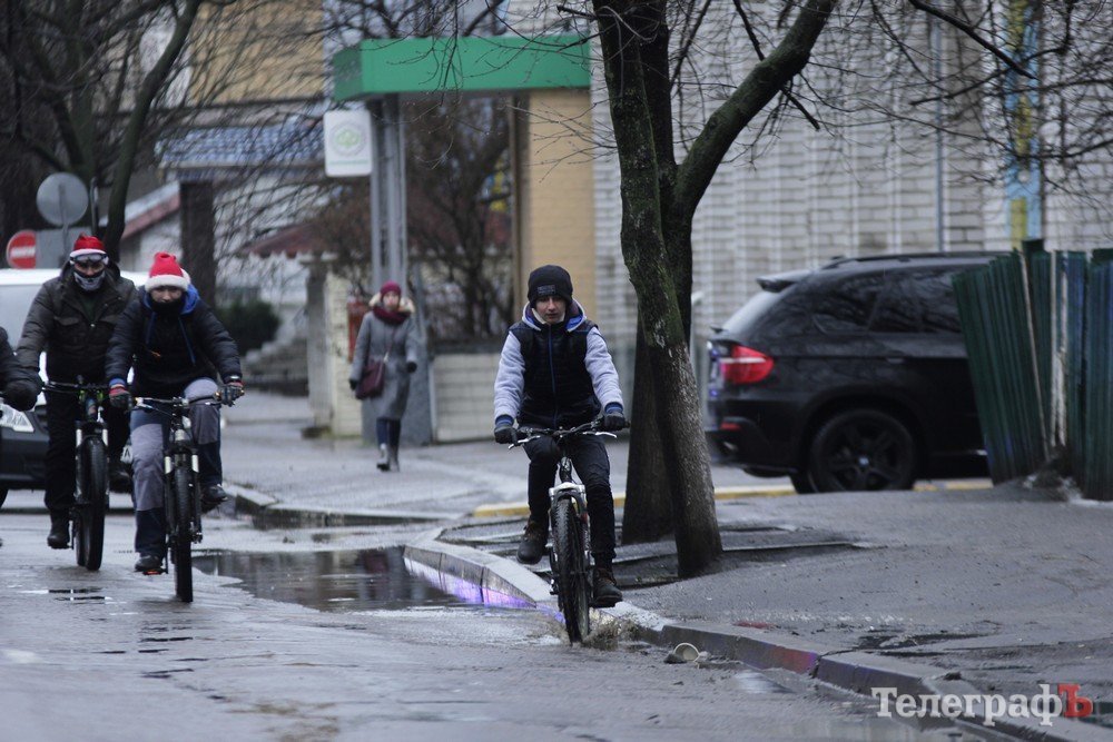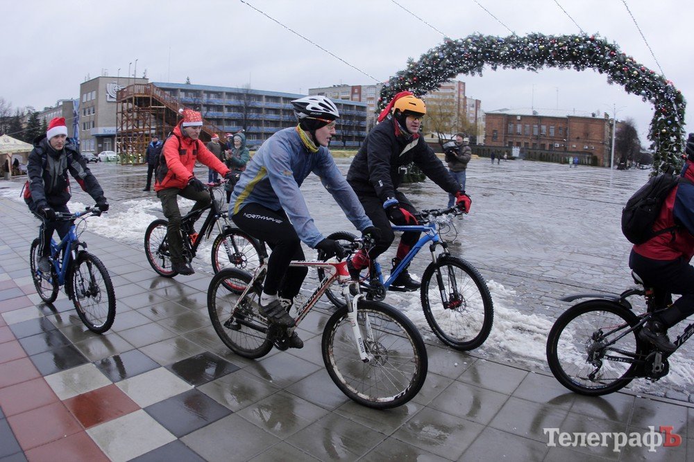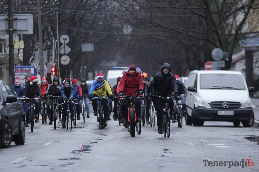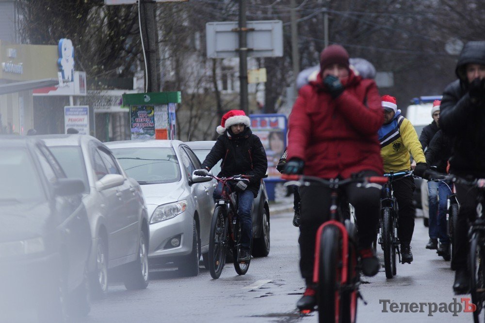 Погода не завадила трьом десяткам впертих велолюбителів дістати свої ровери, вбратися у новорічні костюми та проїхатись вулицями міста.