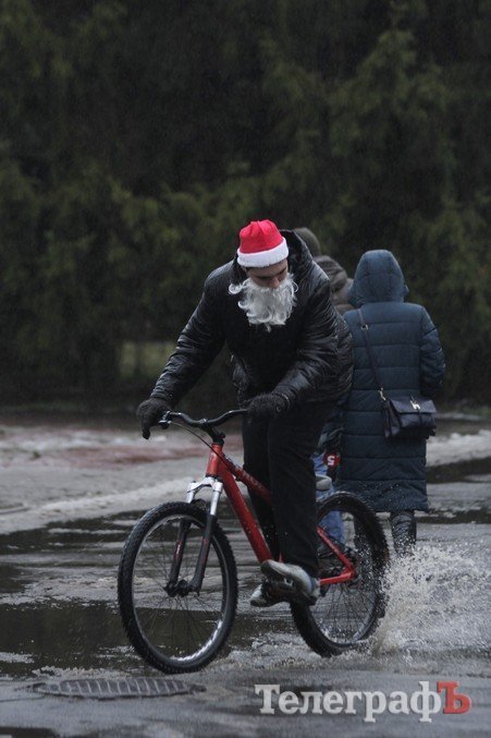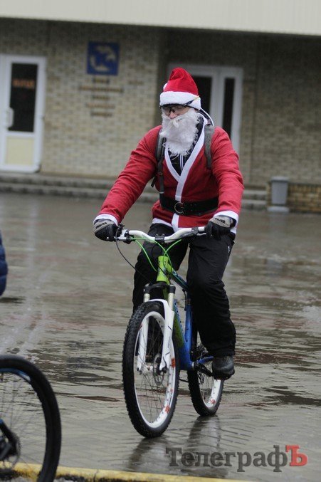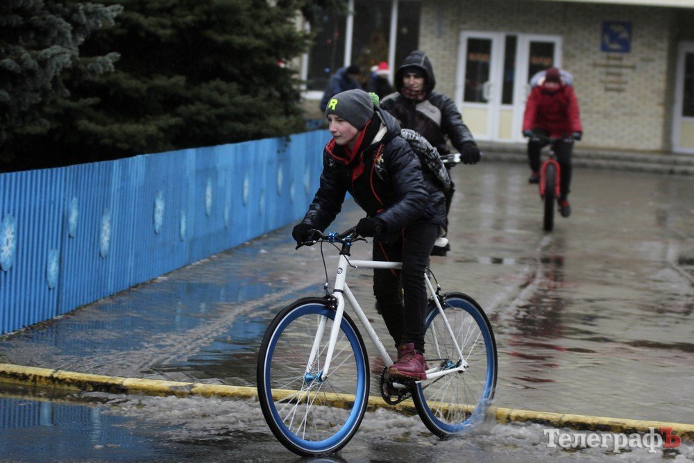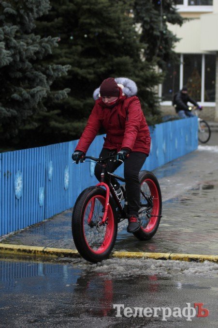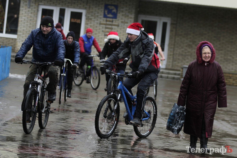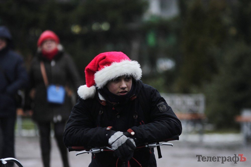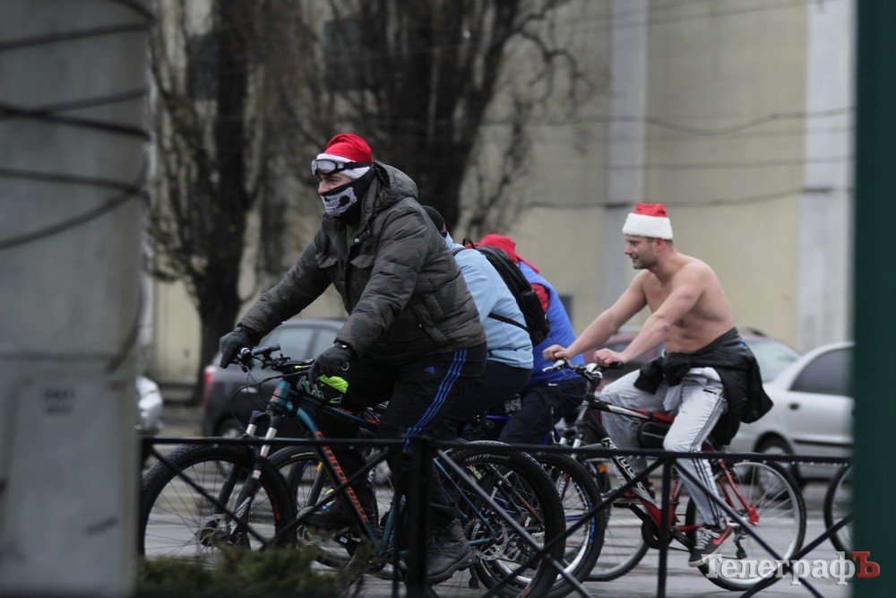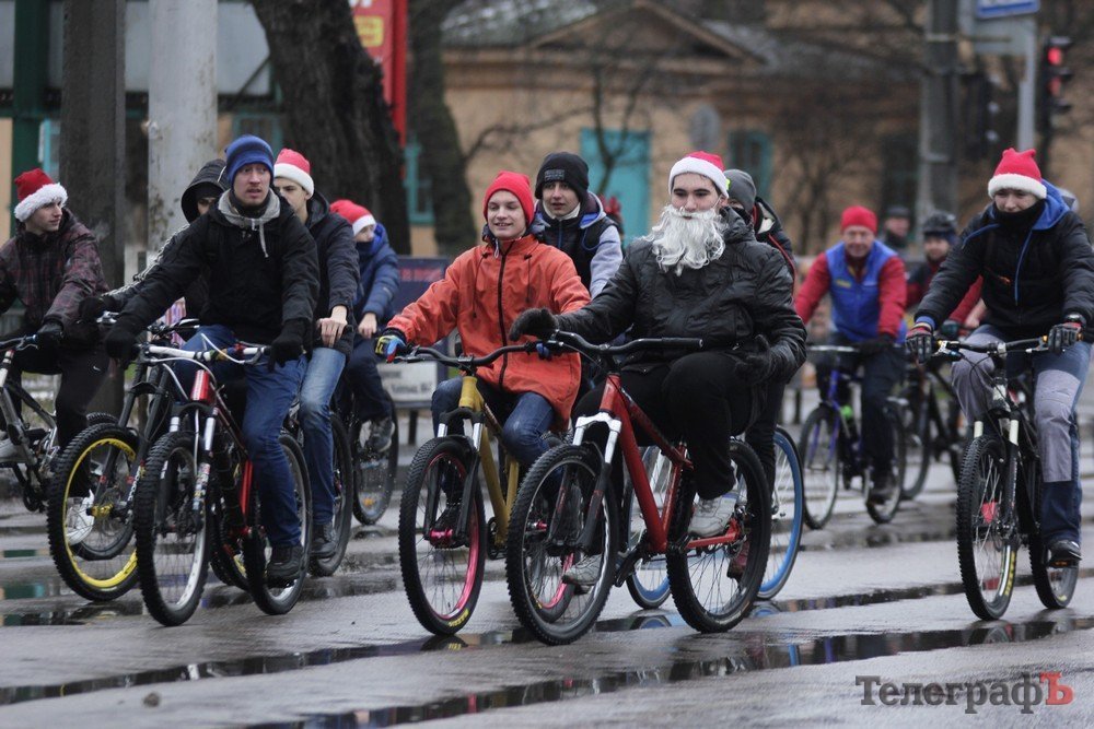 Погода не завадила трьом десяткам впертих велолюбителів дістати свої ровери, вбратися у новорічні костюми та проїхатись вулицями міста.