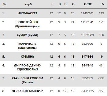 Турнірна таблиця