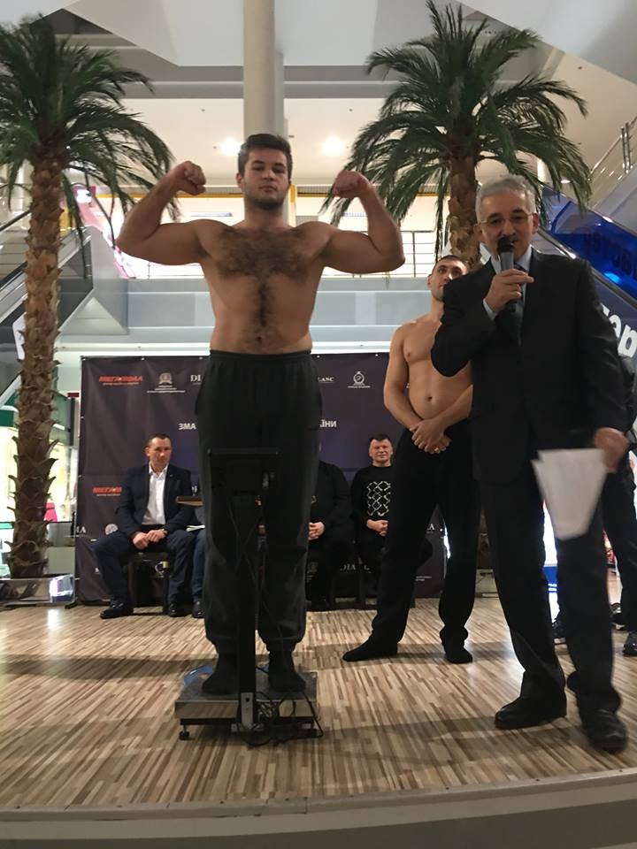 На зважуванні кременчуцький суперваговик показав результат 105,55 кг, що майже на 7 кг важче за Роберта Жмурко (99 кг).