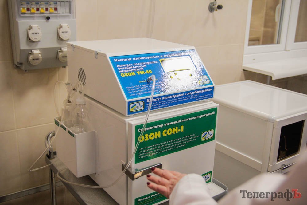 Также журналисты увидели аппарат, заваривающий биологические ткани, новейшую бестеневую лампу для операционной (по словам врачей, эта лампа пока единственная в области), а также стерилизаторы для холодной стерилизации инстументария.