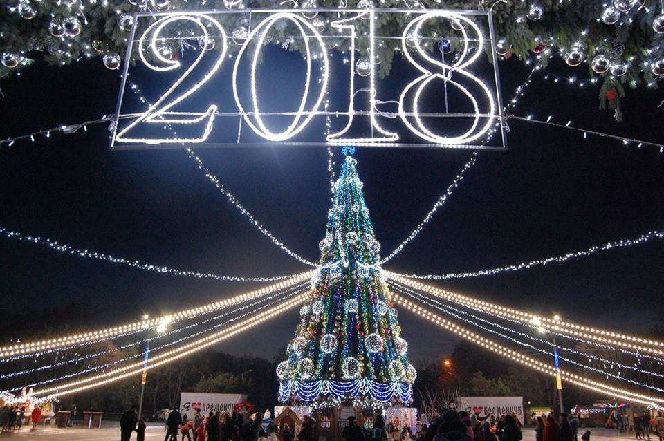 У 2017 році кременчужани вперше зустрічали новий рік на площі Перемоги, до цього ялинка розміщувалась на площі Незалежності. Ялинка була у жовто-блакитних кольорах.