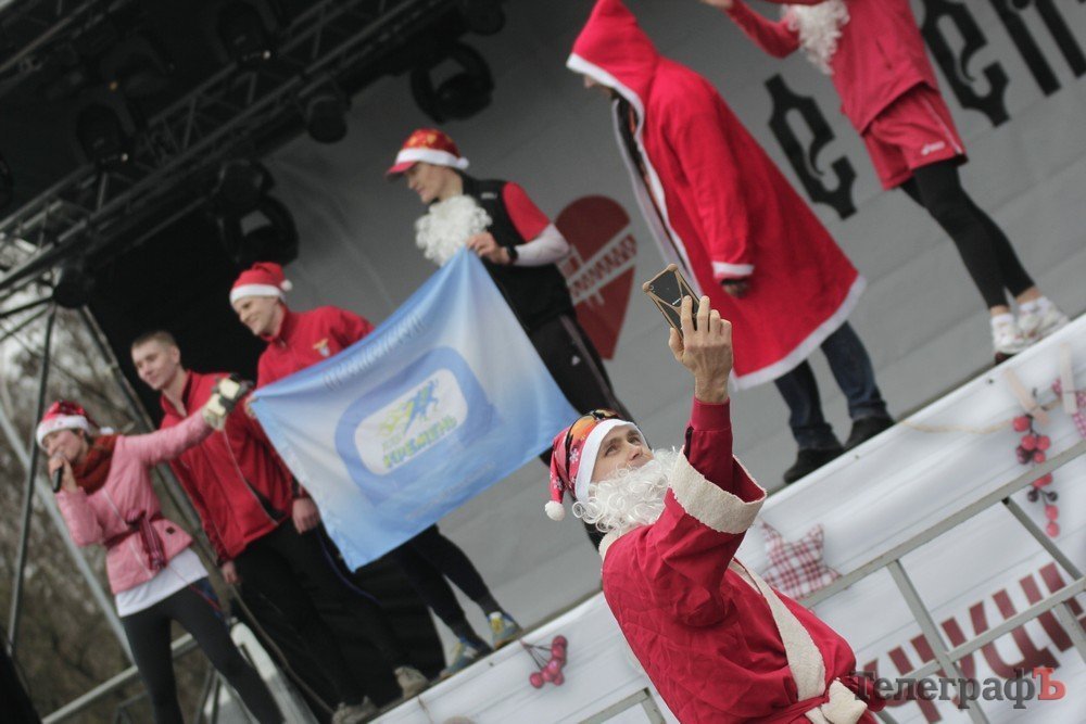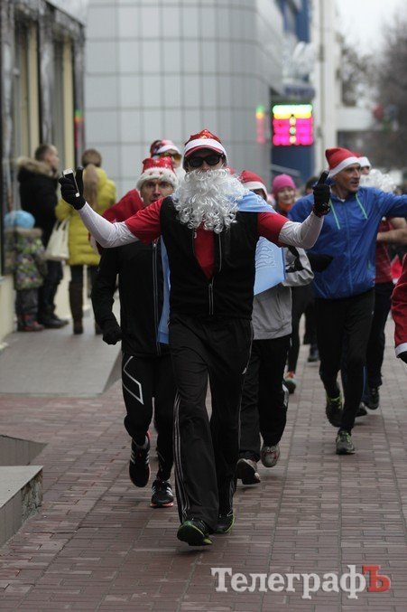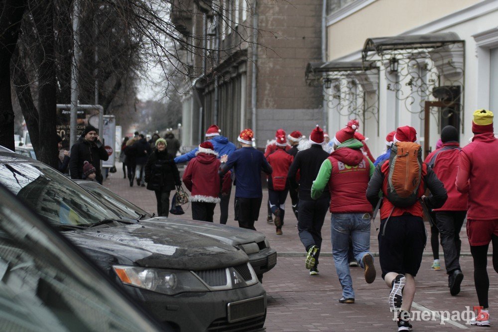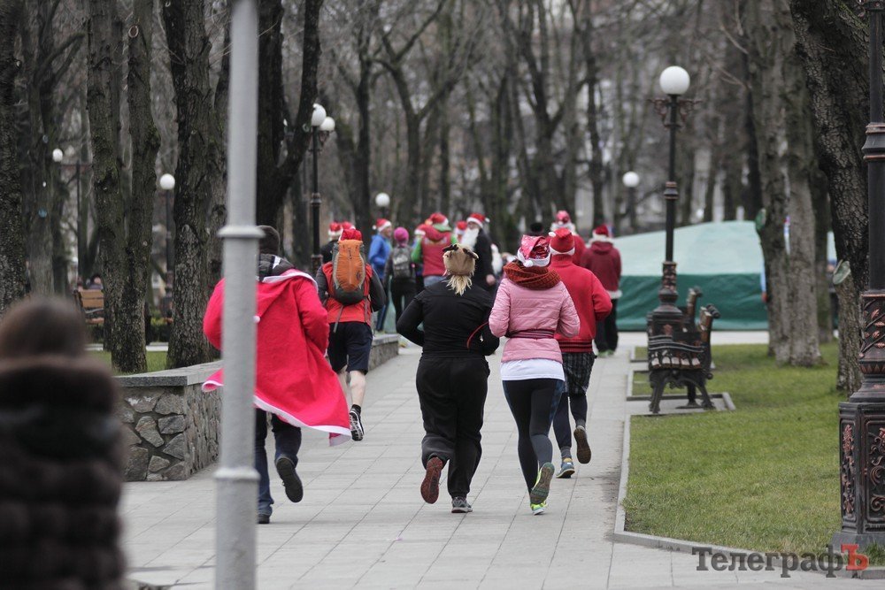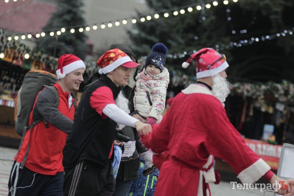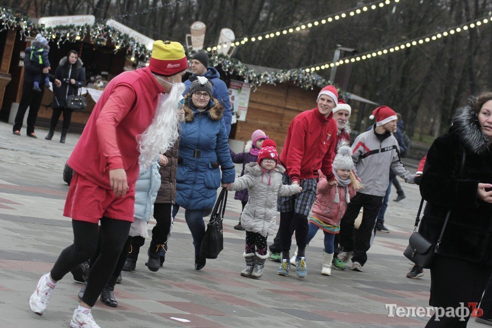 Бігуни в костюмах дідів Морозів та Снігуроньок пробіли по вулиці Соборній