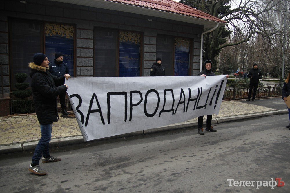 Сьогодні, 31 грудня, 23 активісти Нацкорпусу та С14 провели акцію недовіри депутатам Кременчуцької міської ради, які проголосували за продаж землі на бульварі Пушкіна під літнім майданчиком ресторану «Метрополь».