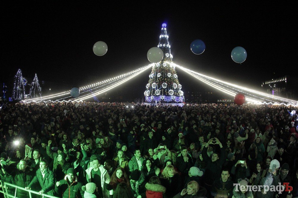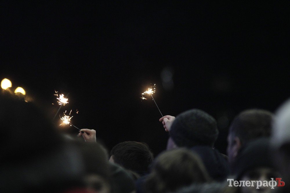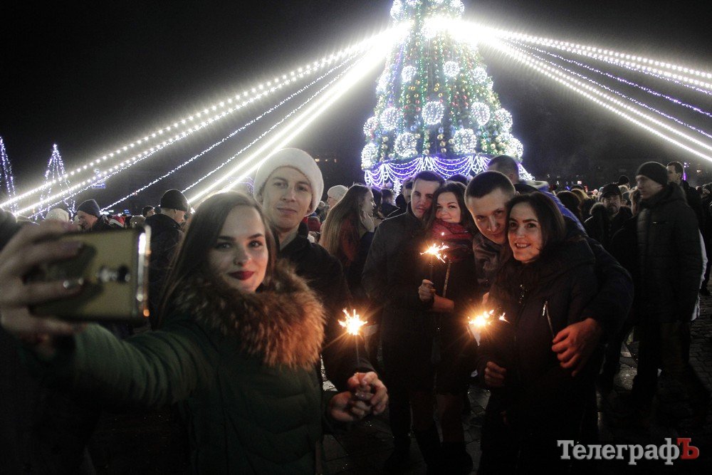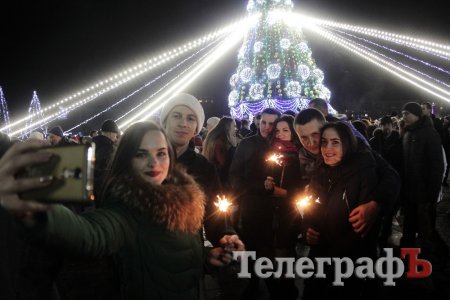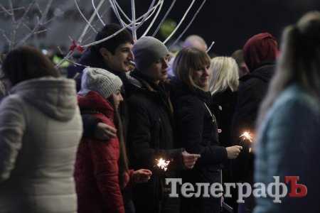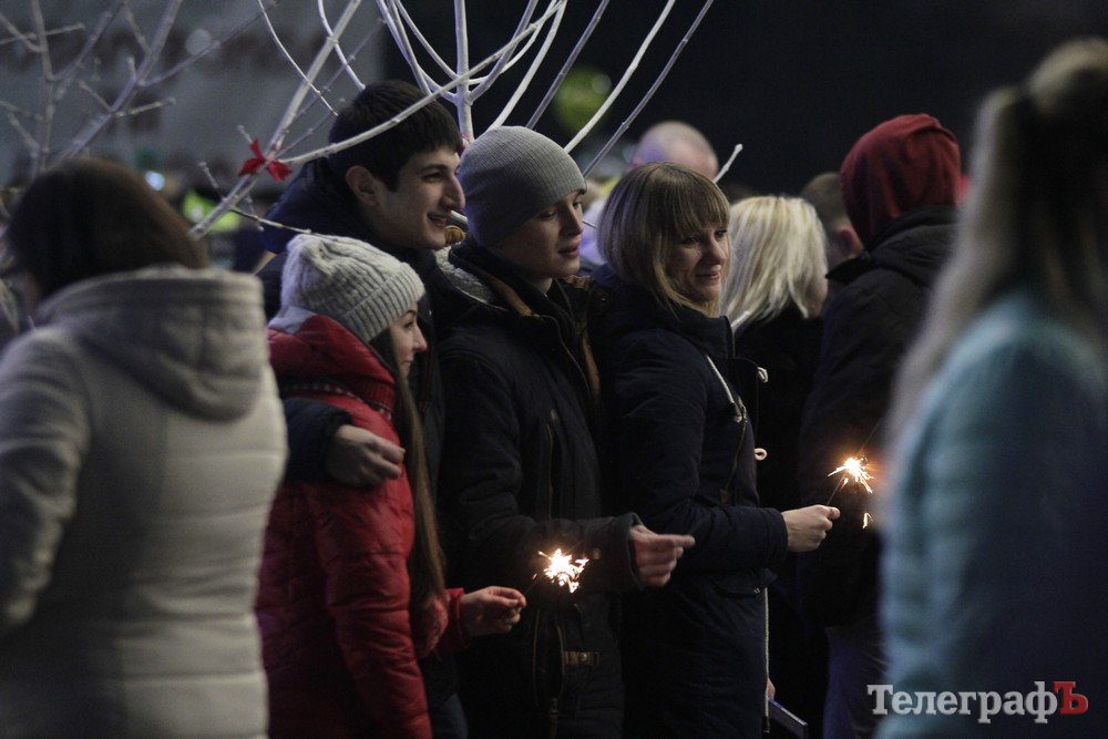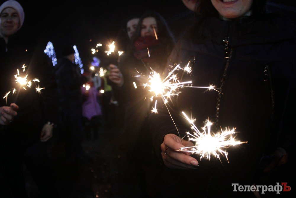 Близько тисячі кременчужан о 2 години ночі 1 січня запалили вогники на площі Перемоги. Біля головної ялинки влаштували своєрідний флешмоб.