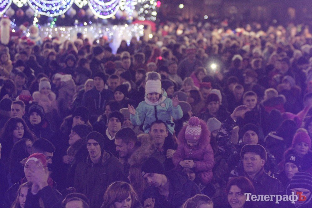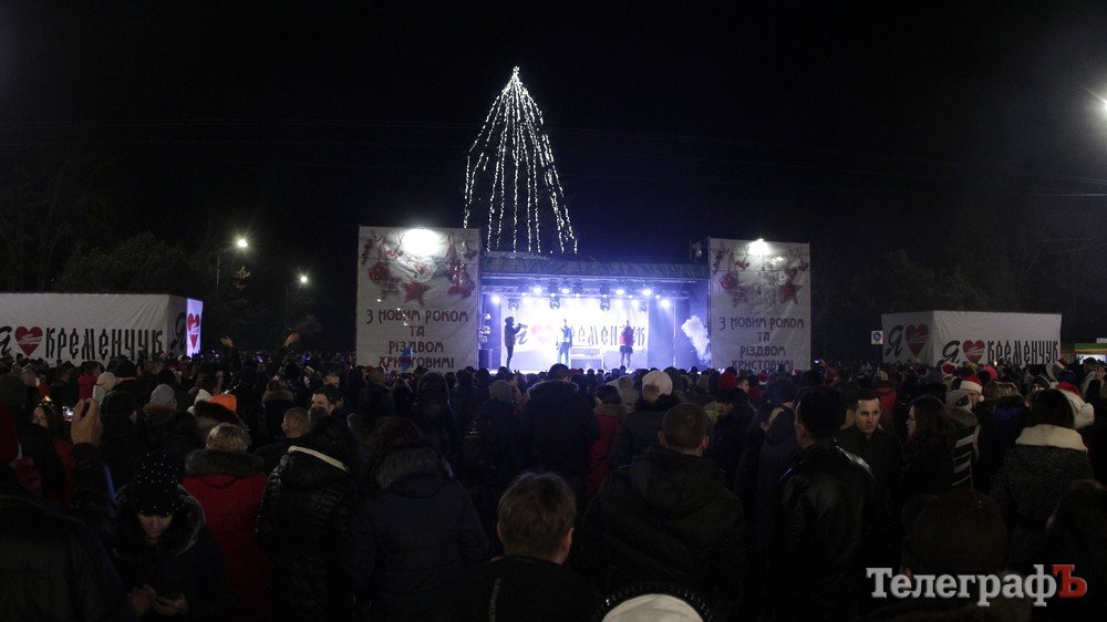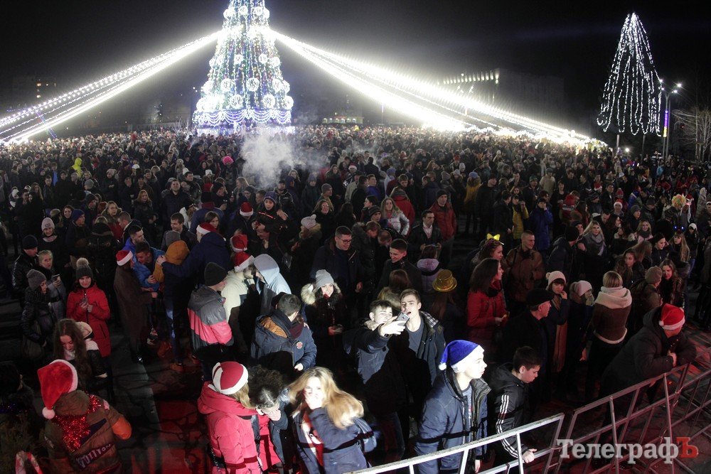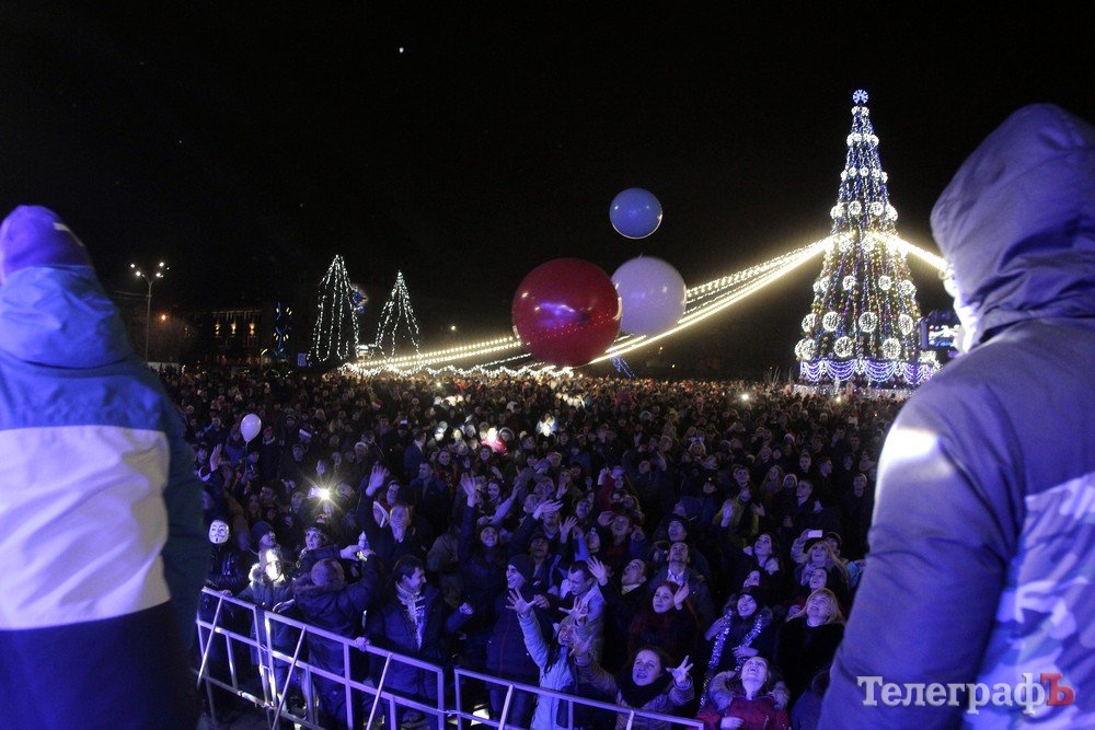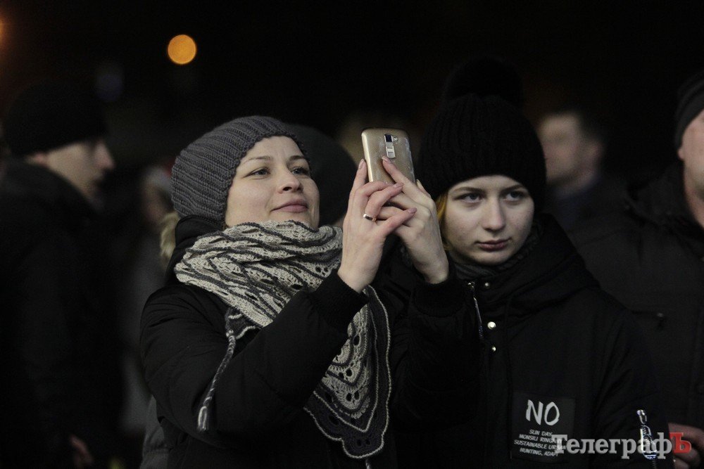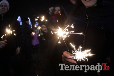 Близько тисячі кременчужан о 2 години ночі 1 січня запалили вогники на площі Перемоги. Біля головної ялинки влаштували своєрідний флешмоб.